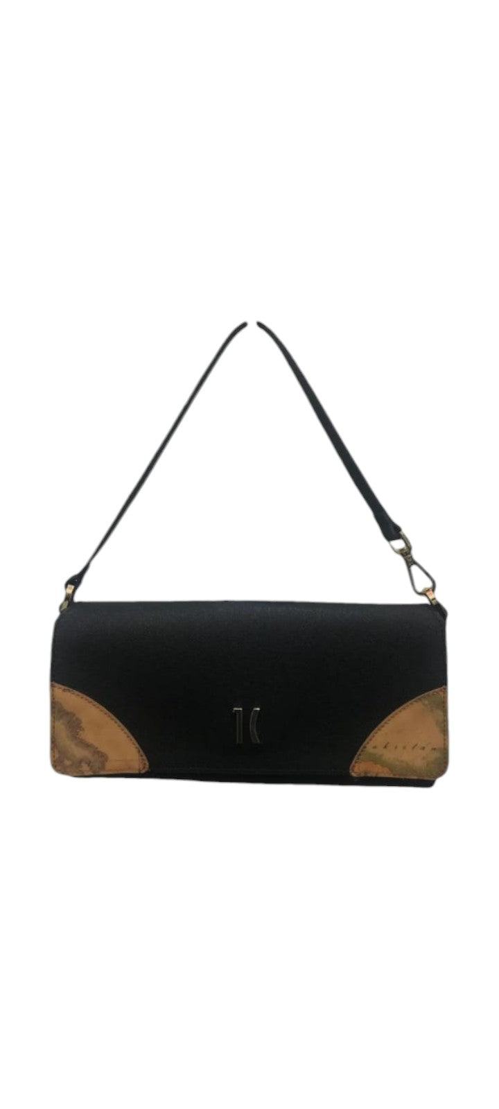 Realizzata in tessuto saffiano, questa pochette è arricchita dall'inserto sagomato Geo Classic. Il manichetto regolabile ne permette una doppia portabilità.