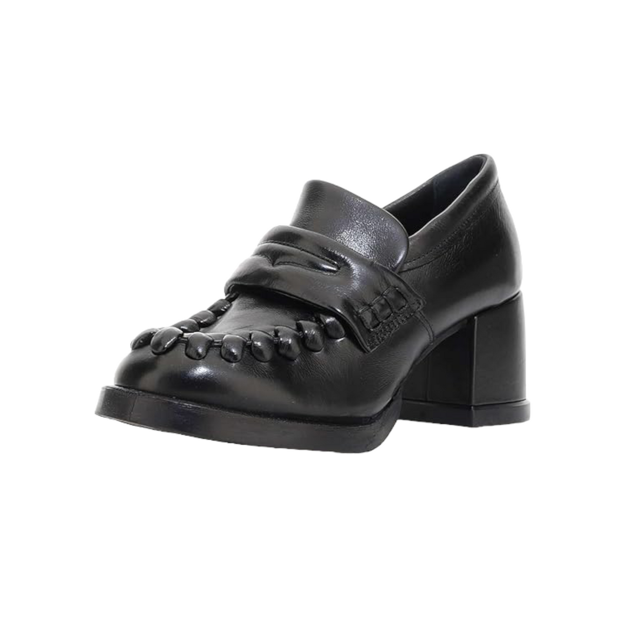 Loafers da donna A.S.98 realizzati in vera pelle, color Nero, chiusura con cerniera slip on, suola in gomma ultra leggera, altezza tacco 7 cm circa. Ideali da indossare con ogni tipo di look e per ogni occasione, questo tipo di stivale è un icona del made in Italy. La linea di scarpe in pelle Vivent presentano una forma e un tacco per chi ama le altezze slanciate e femminili, che si coniugano su modelli asimmetrici particolari e dai dettagli ricercati.