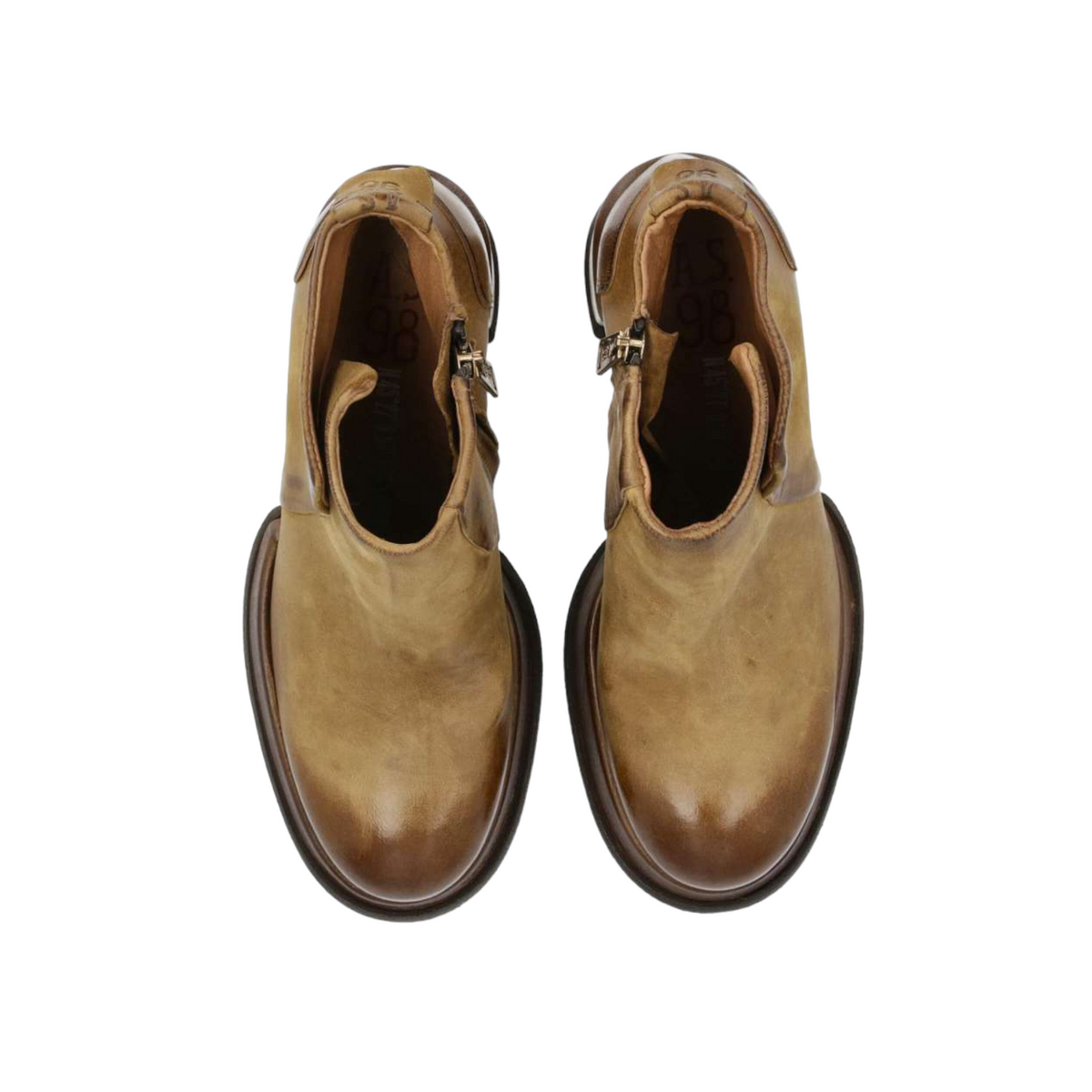 Stivaletti da donna A.S.98 realizzati in vera pelle, color Daino, chiusura con cerniera zip sulla parte laterale, suola in gomma ultra leggera, altezza tacco 8 cm circa. Ideali da indossare con ogni tipo di look e per ogni occasione, questo tipo di stivale è un icona del made in Italy. La linea di scarpe in pelle Vivent presentano una forma e un tacco per chi ama le altezze slanciate e femminili, che si coniugano su modelli asimmetrici particolari e dai dettagli ricercati.