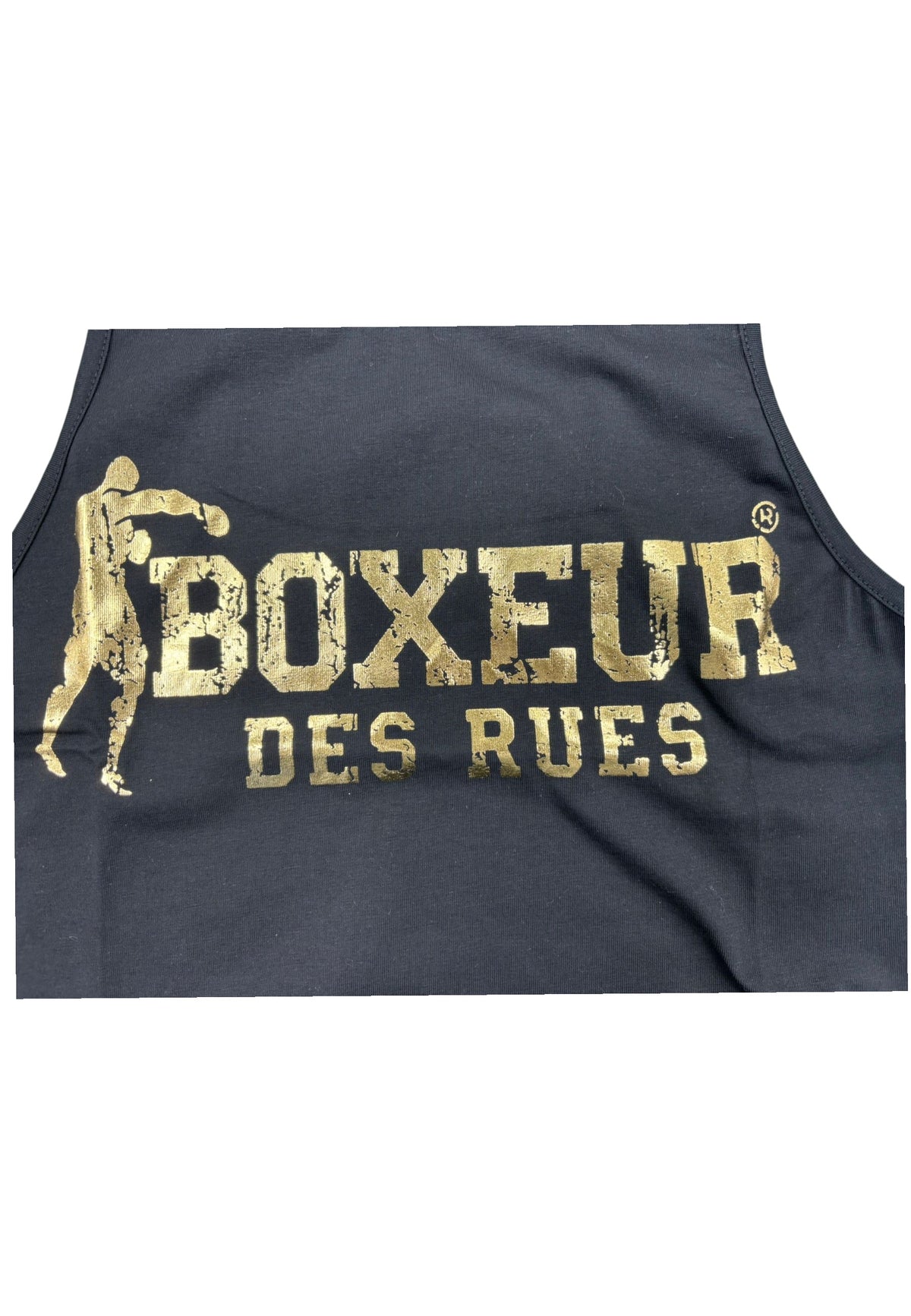 Crop Top nero di Boxeur Des Rues, un capo che unisce comfort e uno spirito audace. Questo top presenta l'iconico logo "boxeur Des Rues" in un accattivante color oro, che aggiunge un tocco di grinta inconfondibile. è il capo ideale per sentirsi alla moda in ogni situazione.