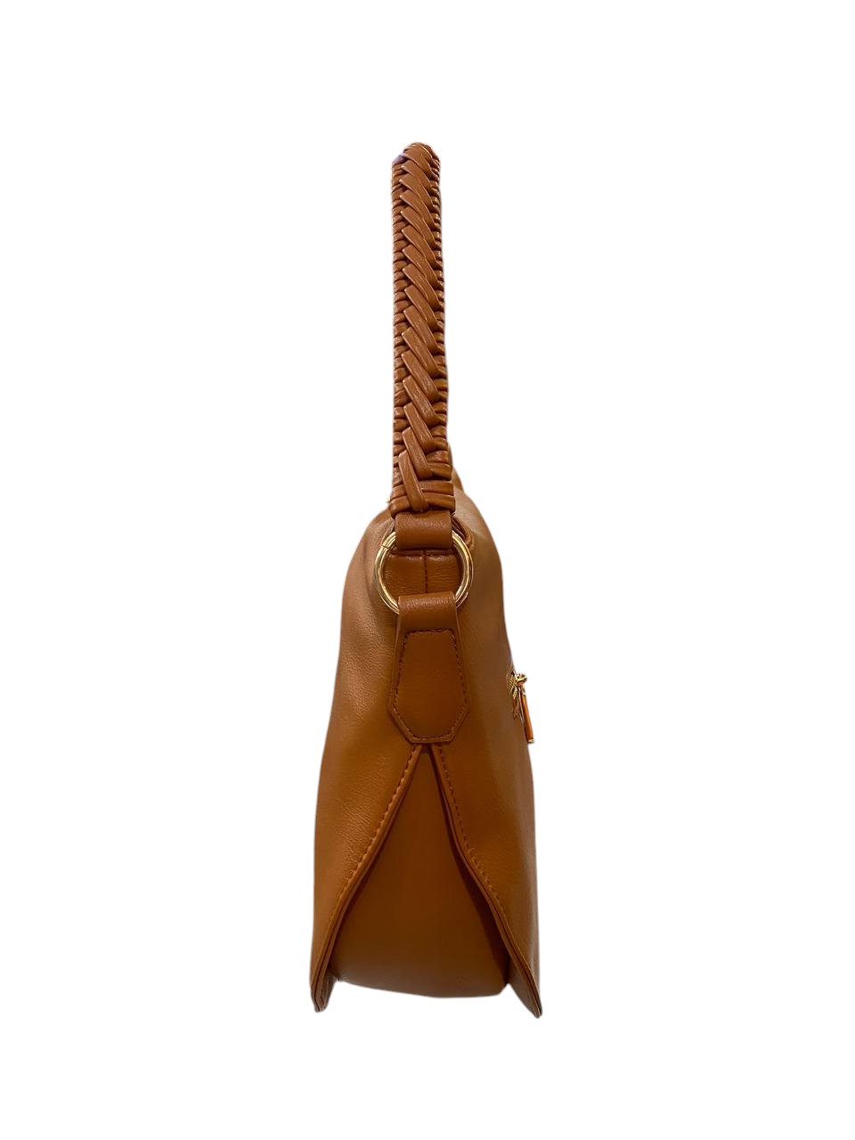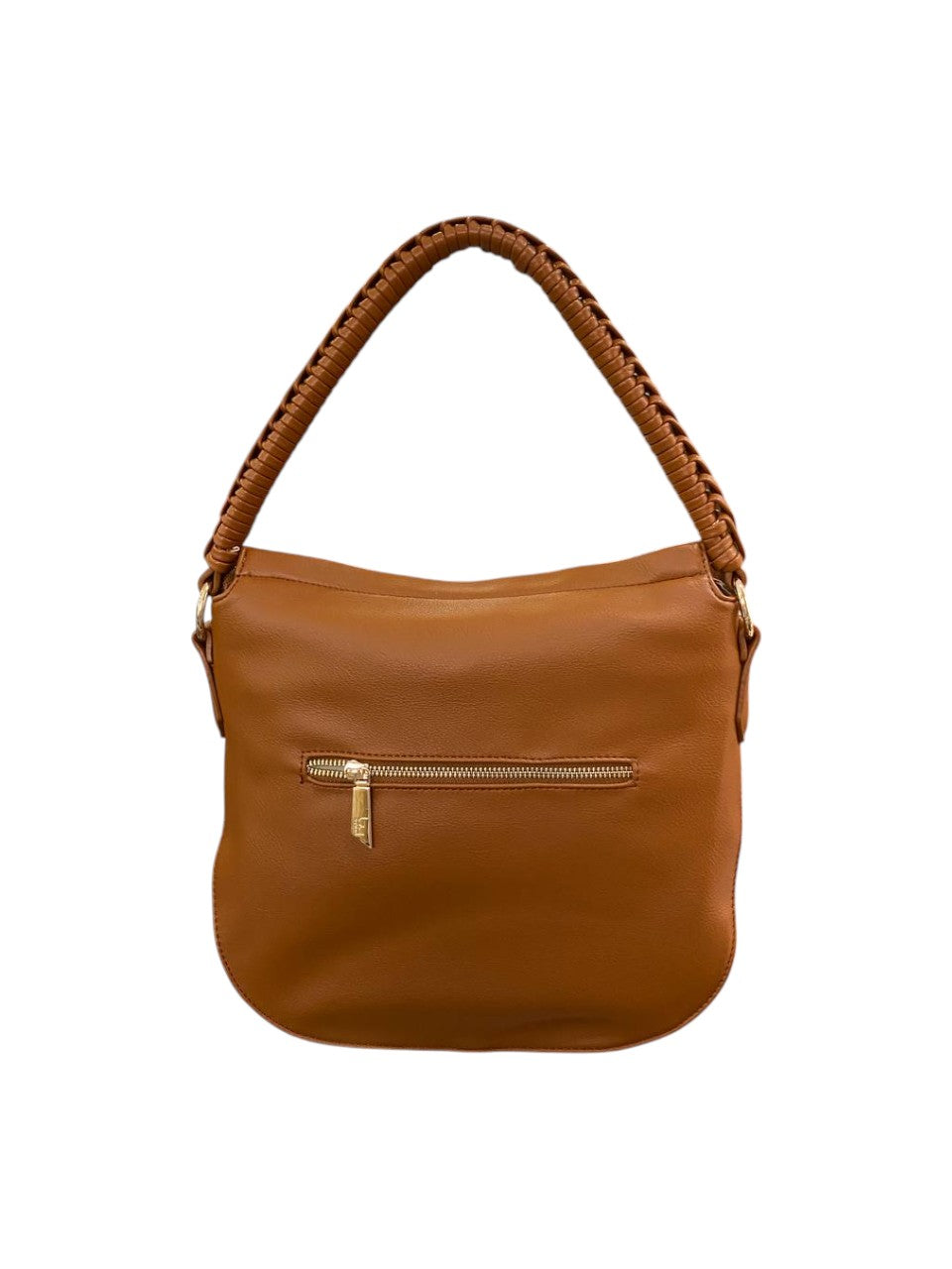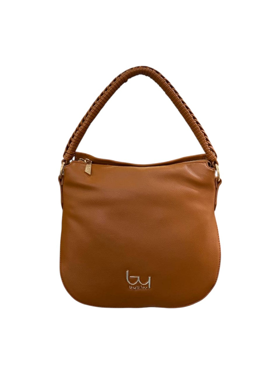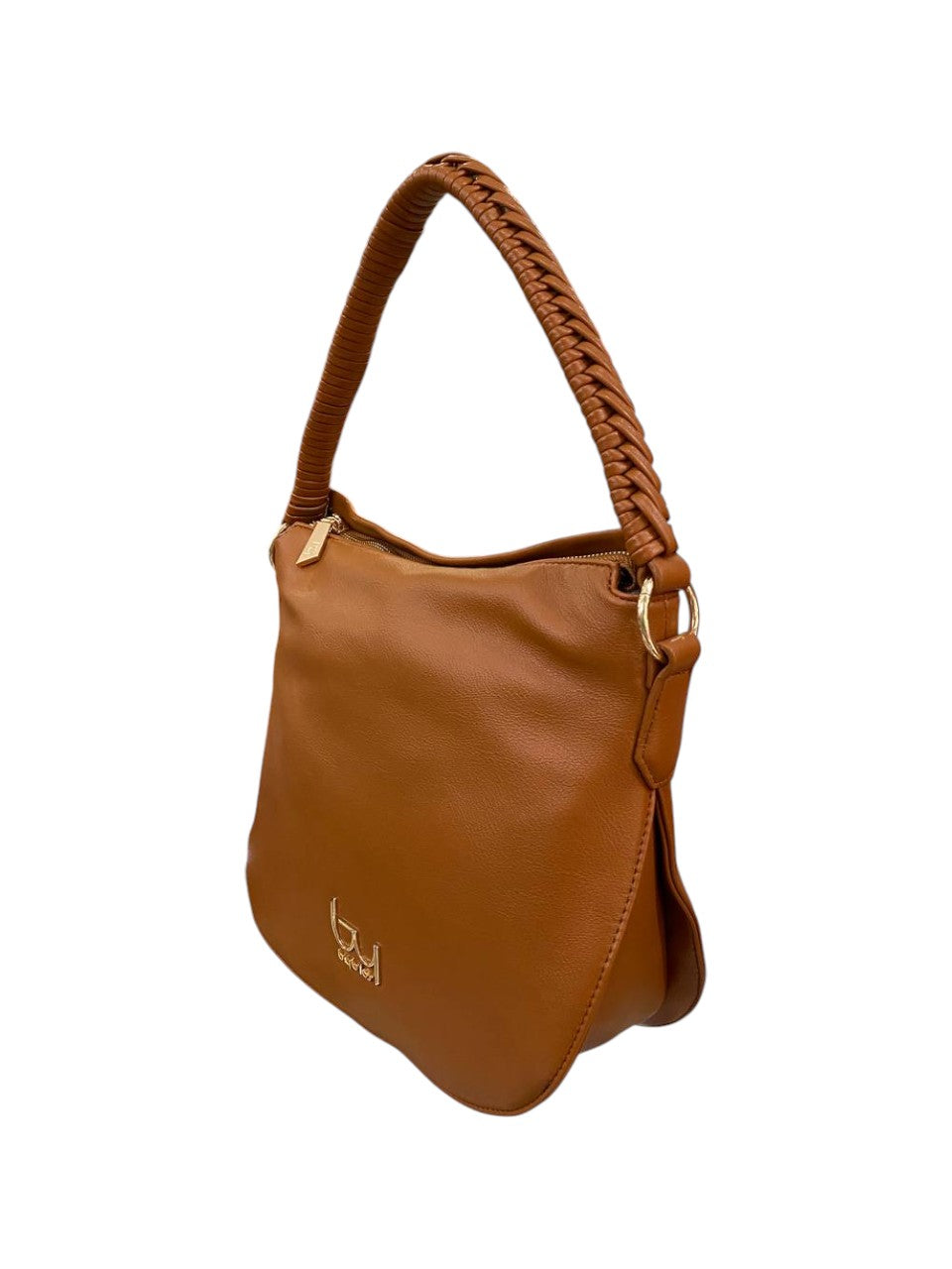 Borsa Byblos in ecopelle con chiusura a zip, scompartimenti interni, manico, tracolla rimuovibile e logo in metallo posizionato frontalmente.