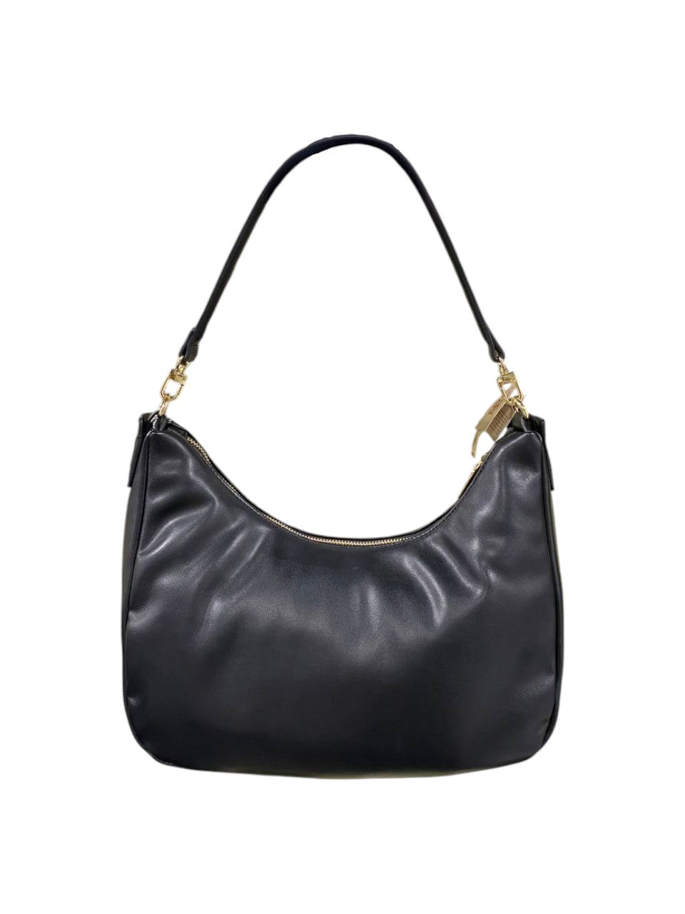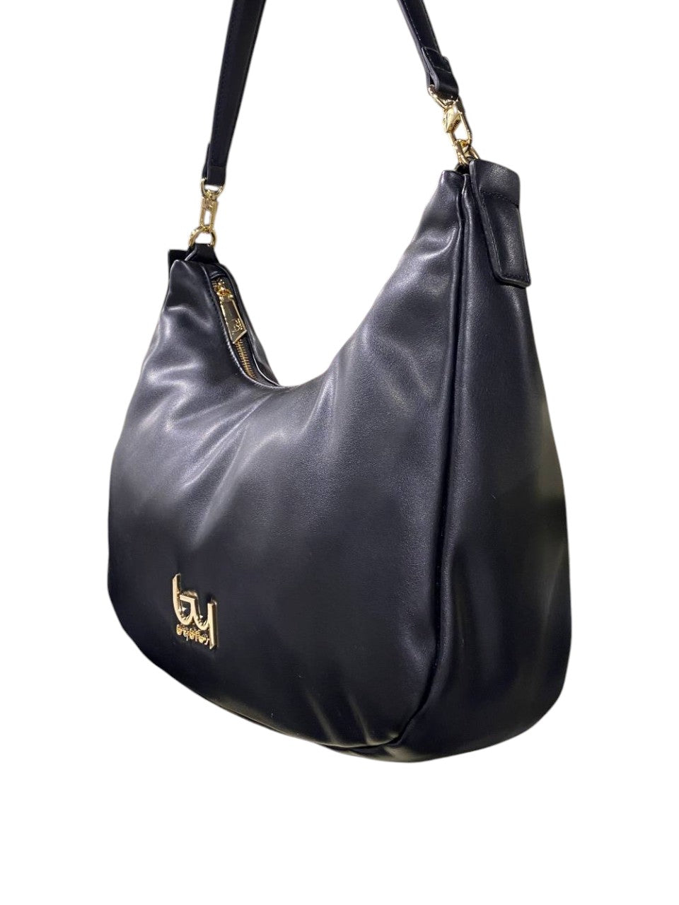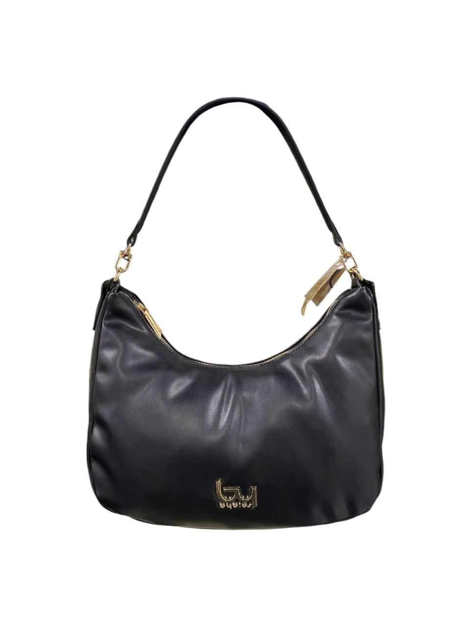 Borsa Byblos in ecopelle con chiusura a zip, manico, scompartimenti interni e logo in metallo posizionato frontalmente.