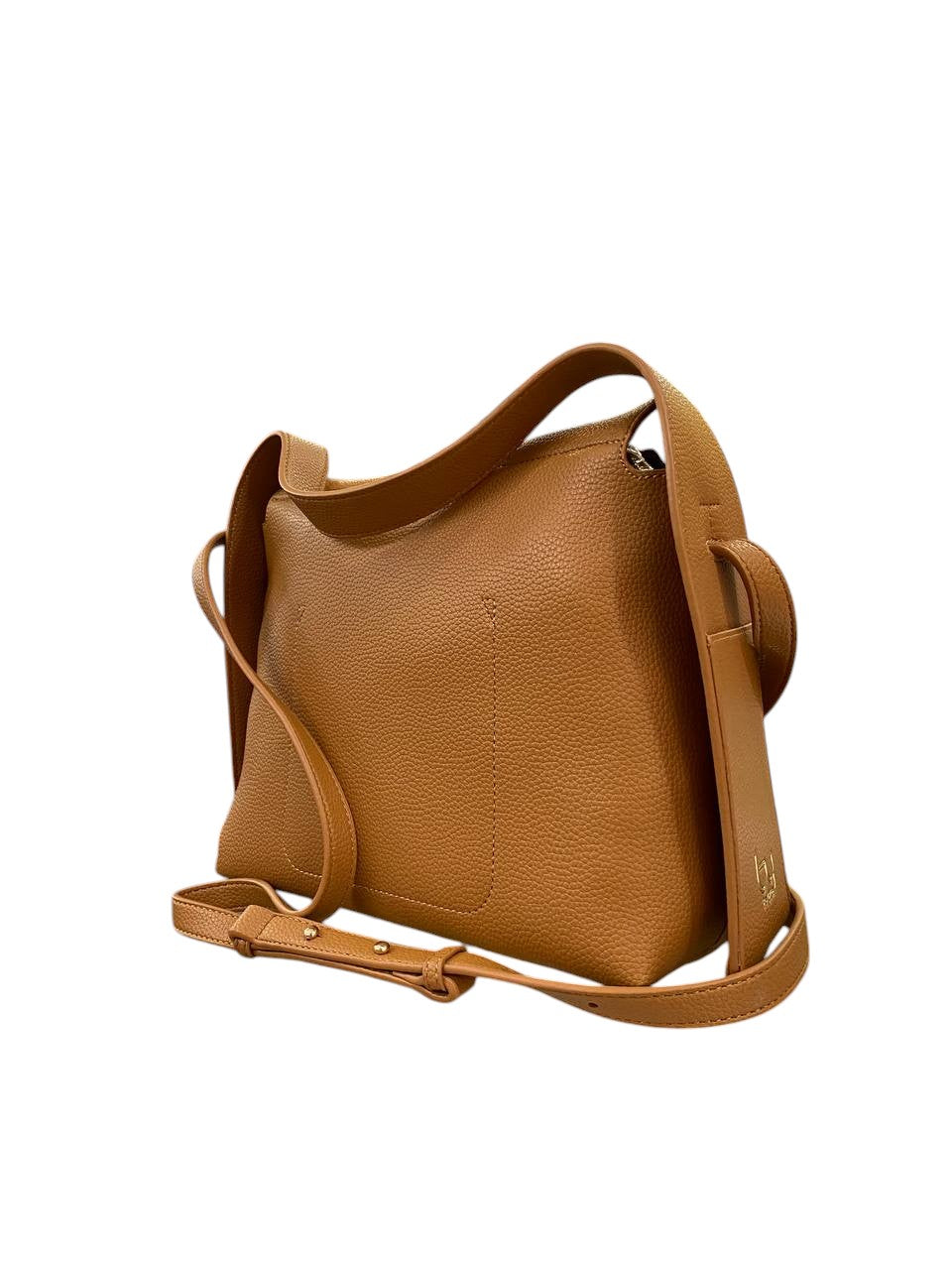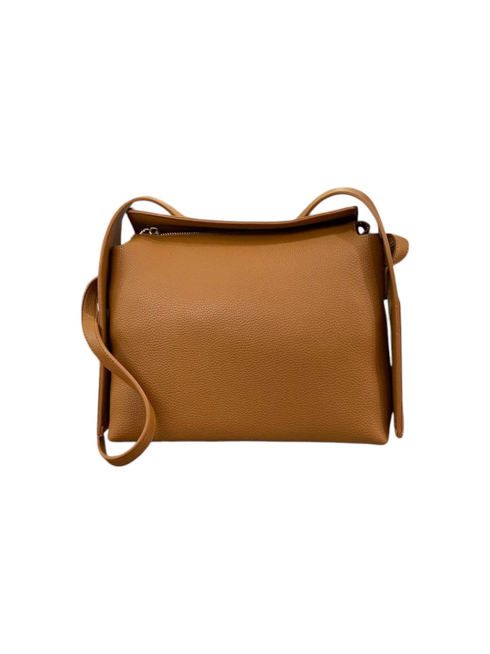 Borsa Byblos in ecopelle con chiusura a zip, tasche laterali, scompartimenti interni, tracolla e logo in metallo posizionato lateralmente.