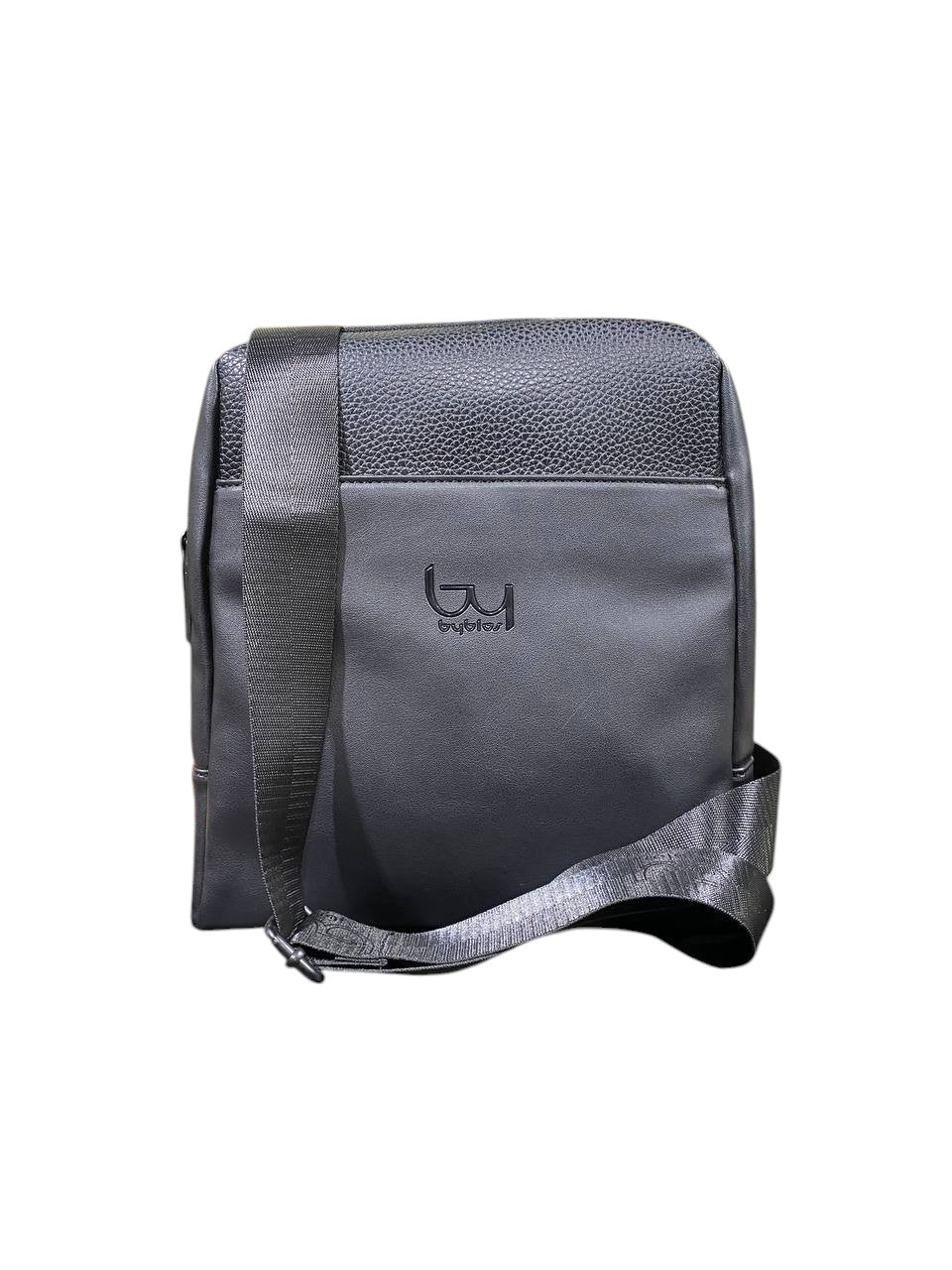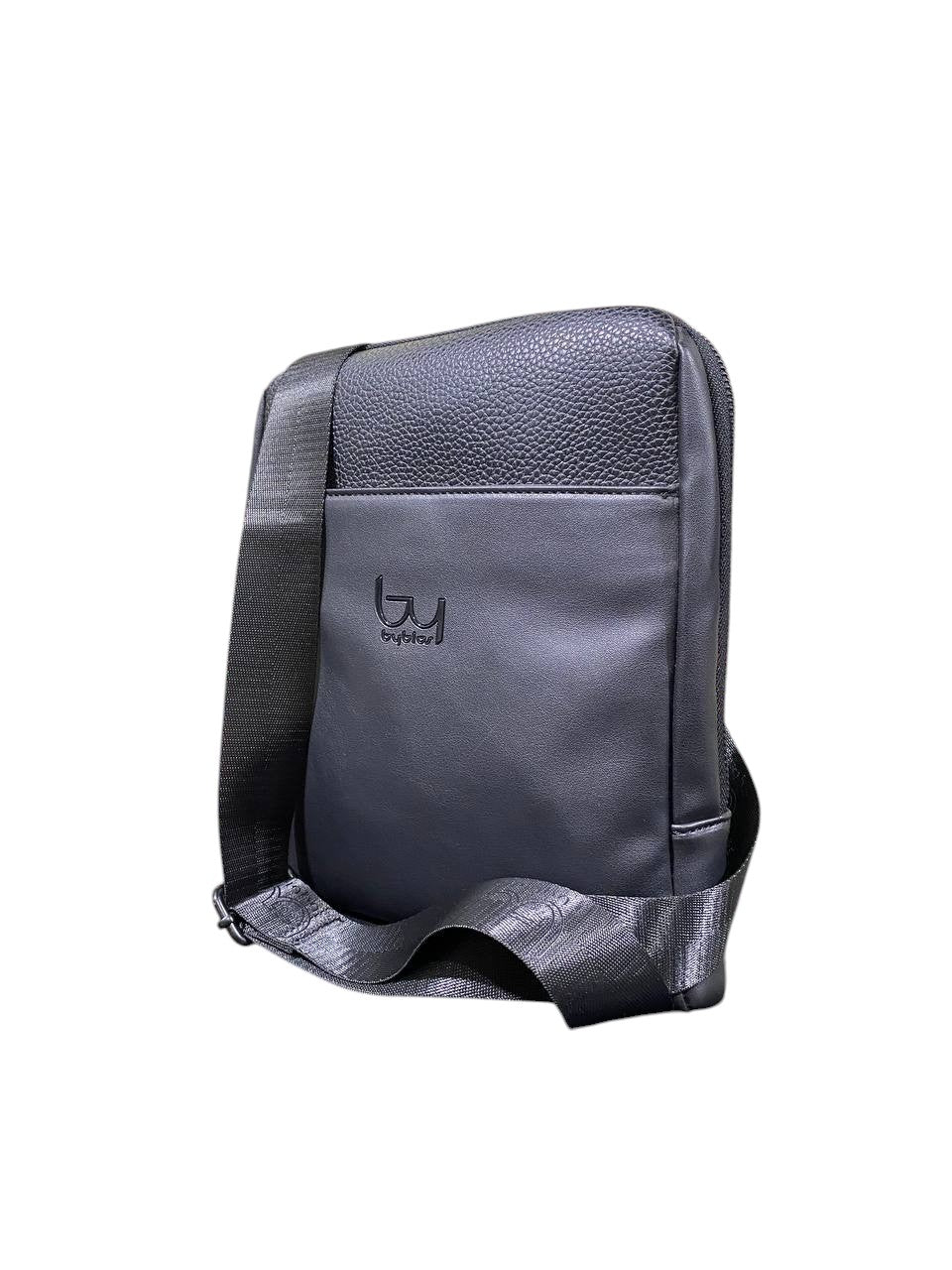 Tracolla Byblos della collezione uomo in ecopelle con due scompartimenti con chiusura a zip, tracolla e logo in rilievo frontale.