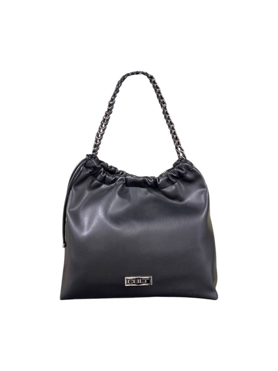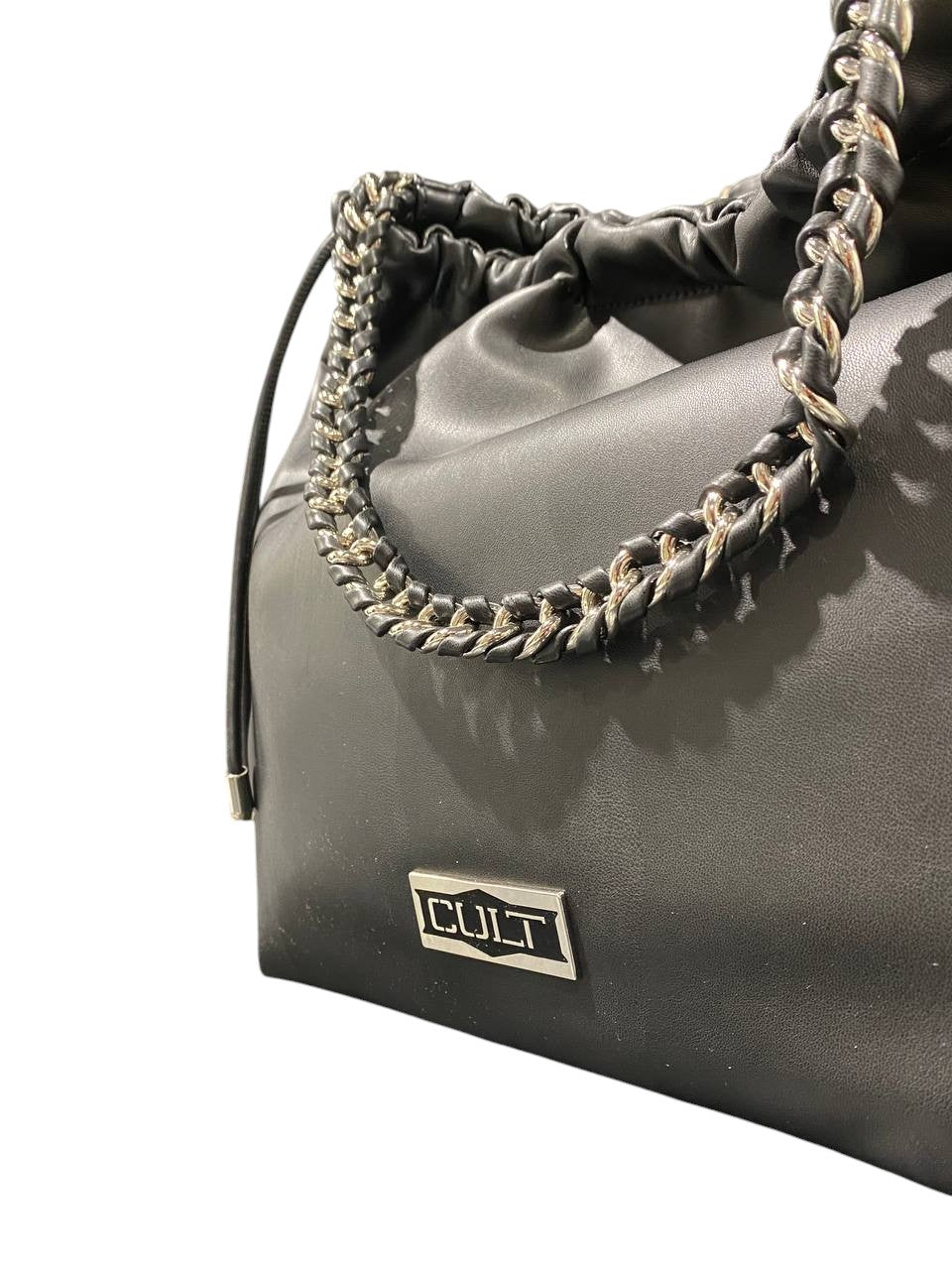 Borsa firmata CULT in ecopelle con chiusura magnetica, scompartimenti interni e manico.