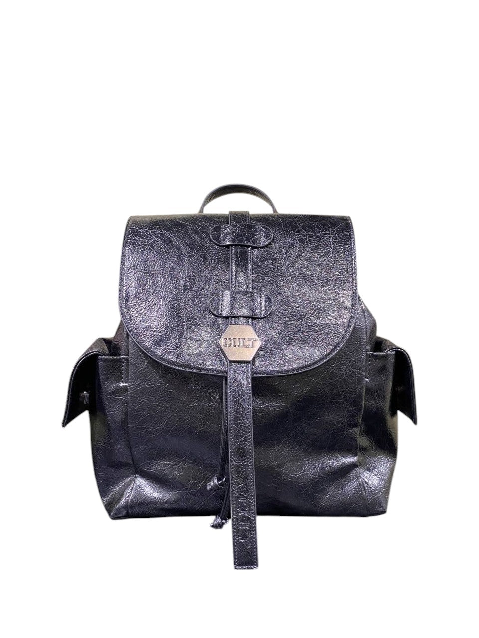 Zaino firmato CULT in ecopelle con chiusura a zip e a laccio, e scompartimenti interni ed esterni