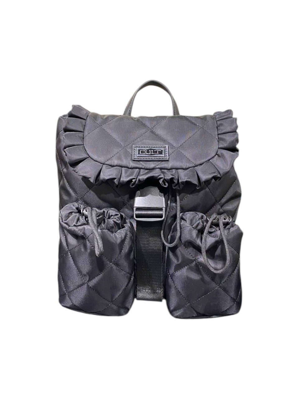 Zaino firmato CULT in poliestere con chiusura a laccio e magnetica, e scompartimenti interni ed esterni.