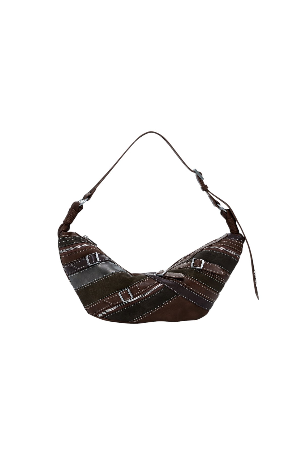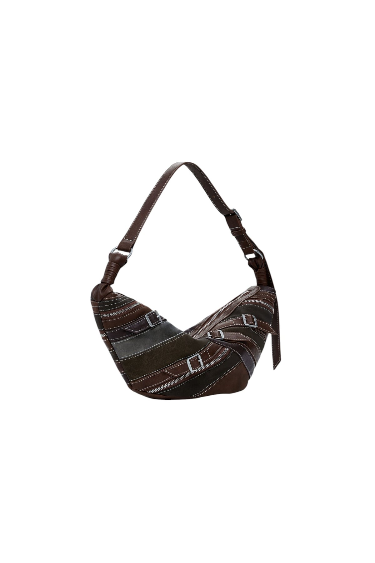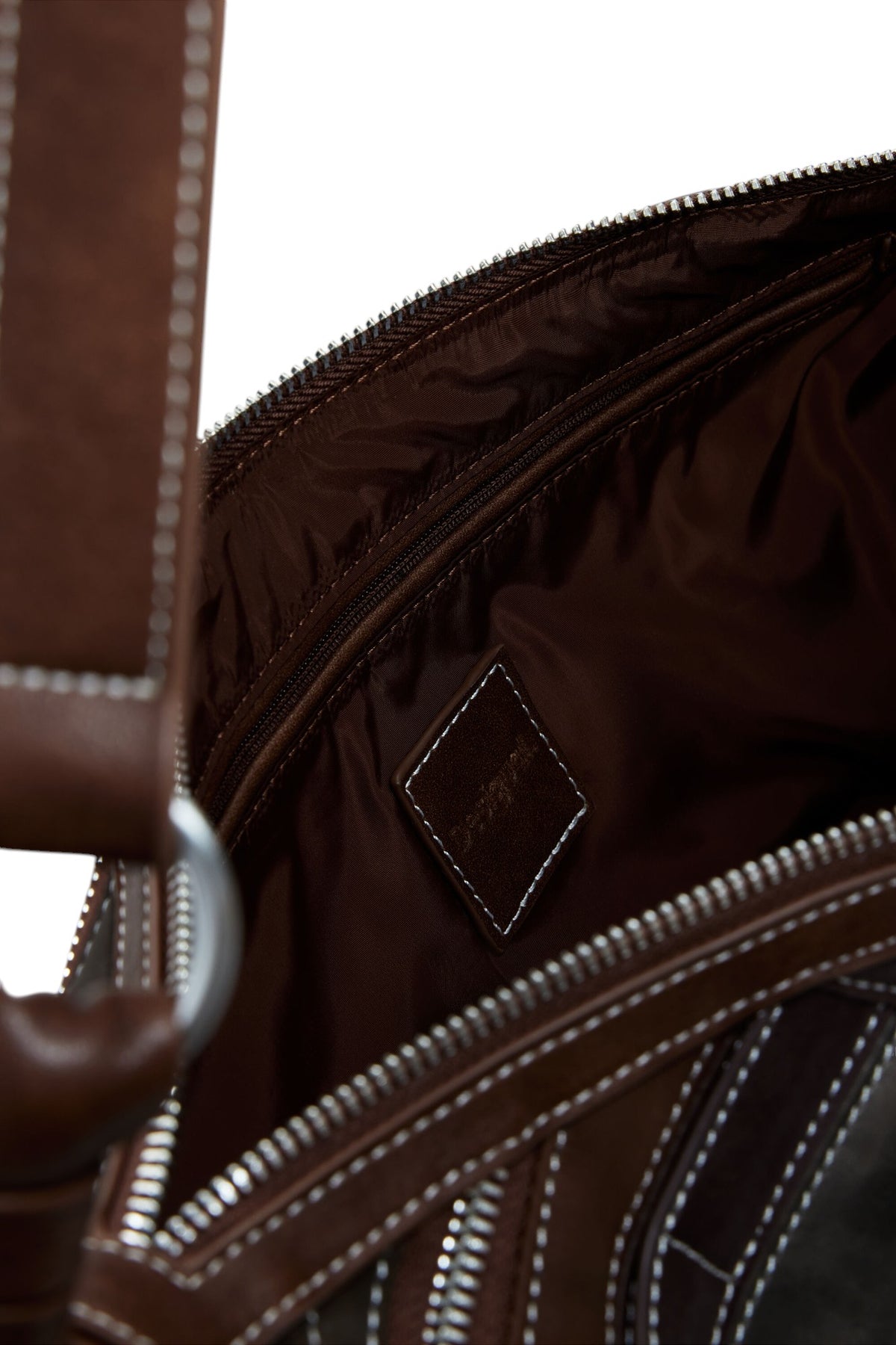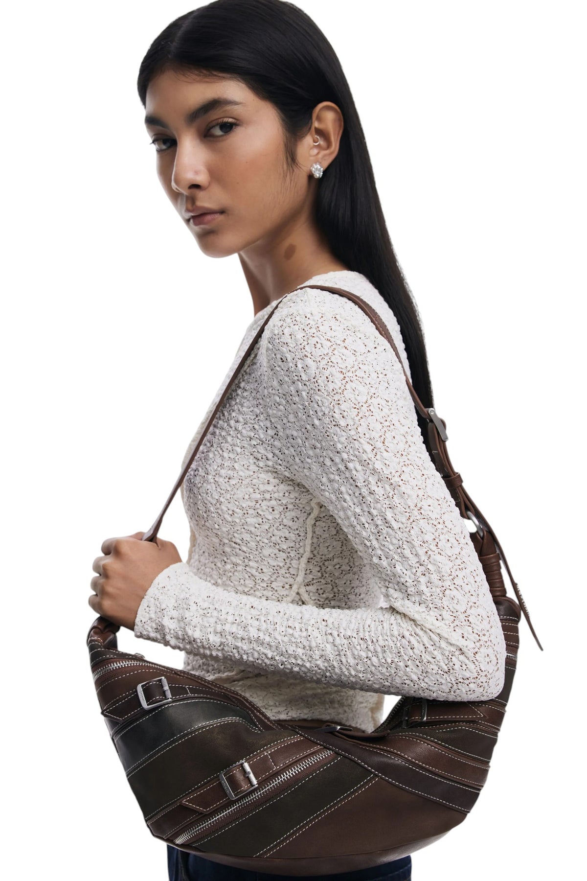 Borsa a tracolla di medie dimensioni, con diversi tessuti effetto pelle tipo patchwork, manici intercambiabili e chiusura con cerniera.