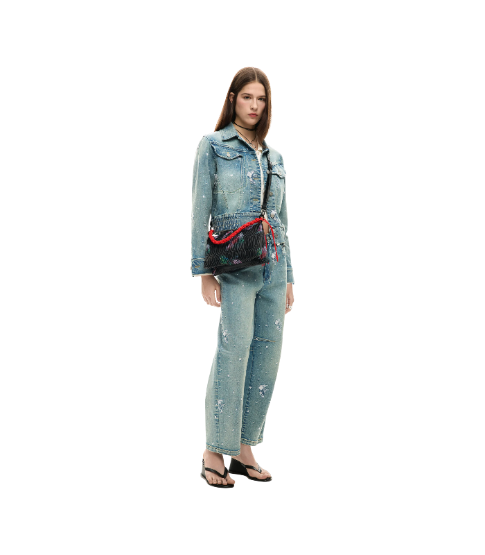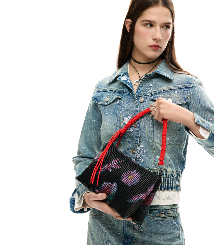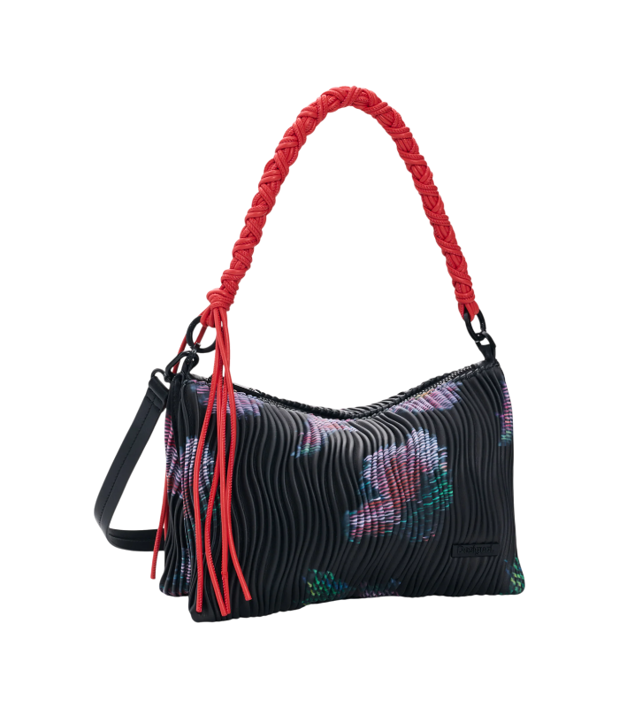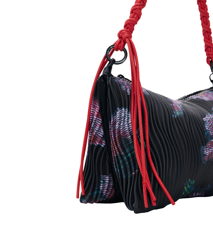 Borsa media di forma rettangolare, con cinghie intercambiabili, texture in rilievo effetto pelle e stampa astratta di fiori