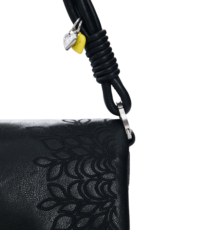 Borsa media con manici intercambiabili, dettagli di charms e ricami di mandala in effetto pelle.