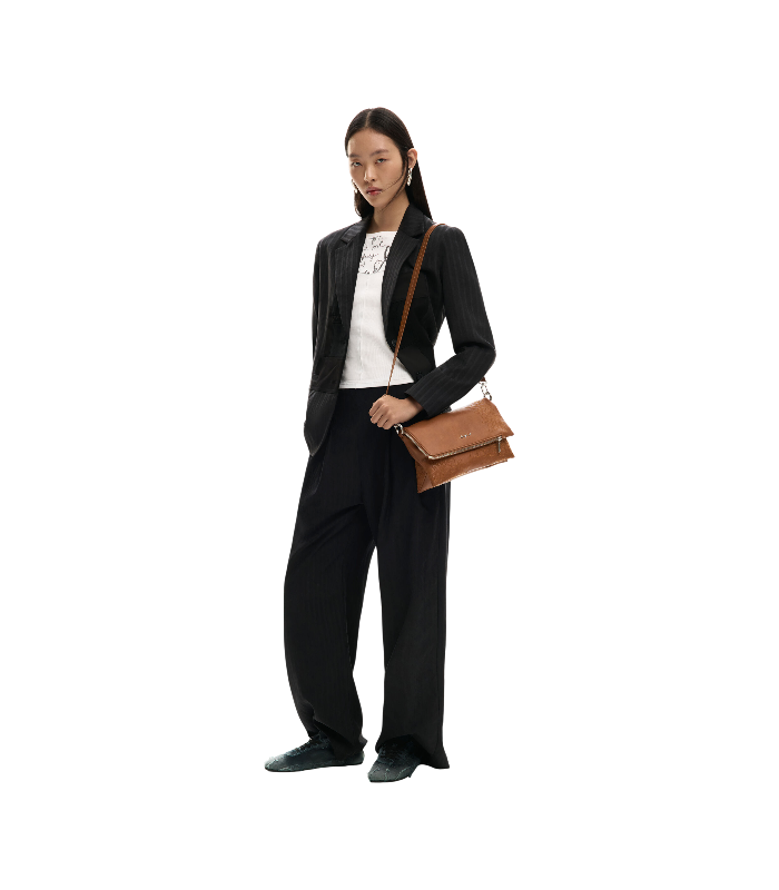 Borsa media con patta, effetto pelle, con tracolle intercambiabili e charm rimovibili.