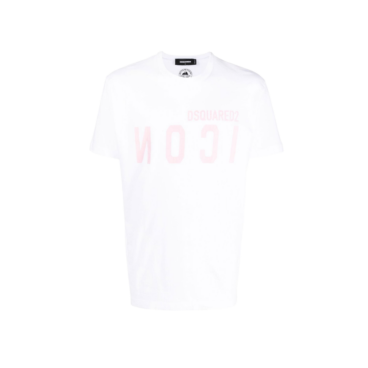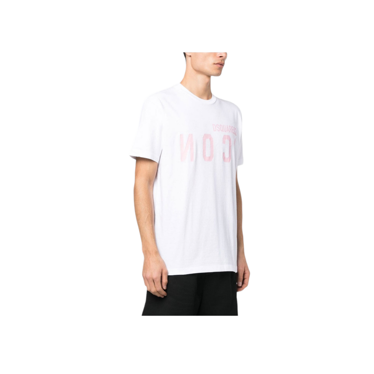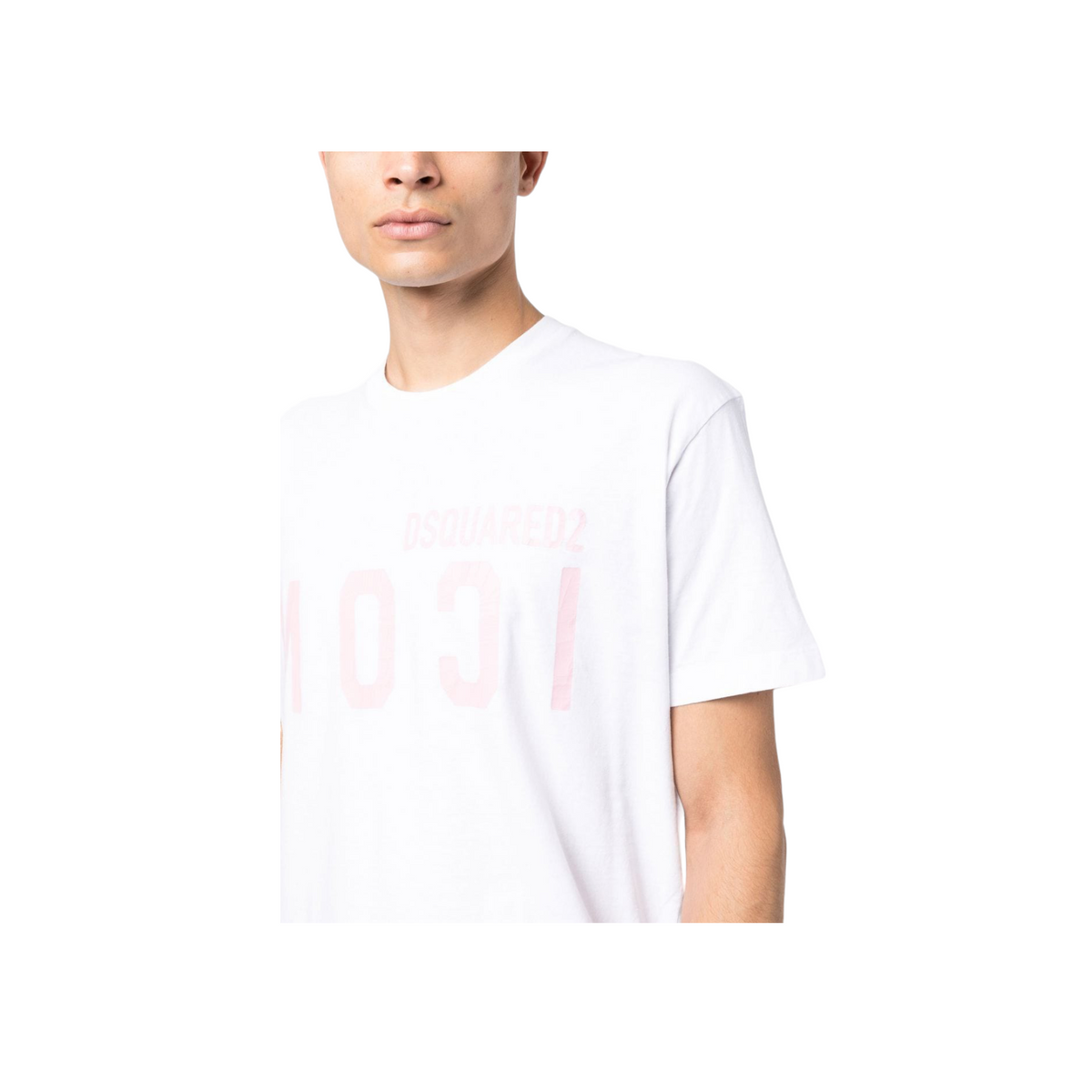 T-shirt mezza manica realizzata in cotone color bianco con logo specchiato Dsquared2 Icon sul petto. Adatta per ogni occasione, look ed attività. Ideale per chi ama le grandi firme.