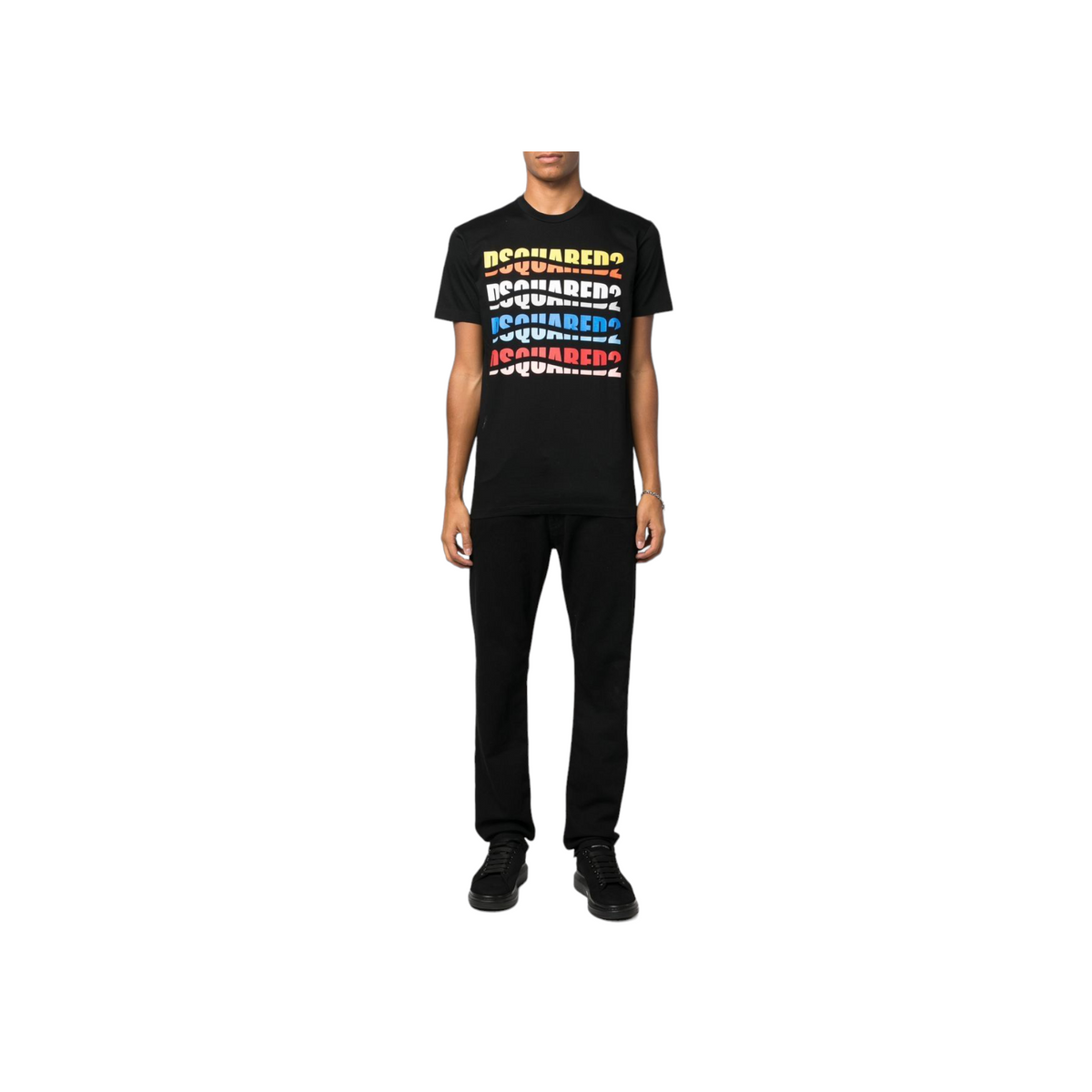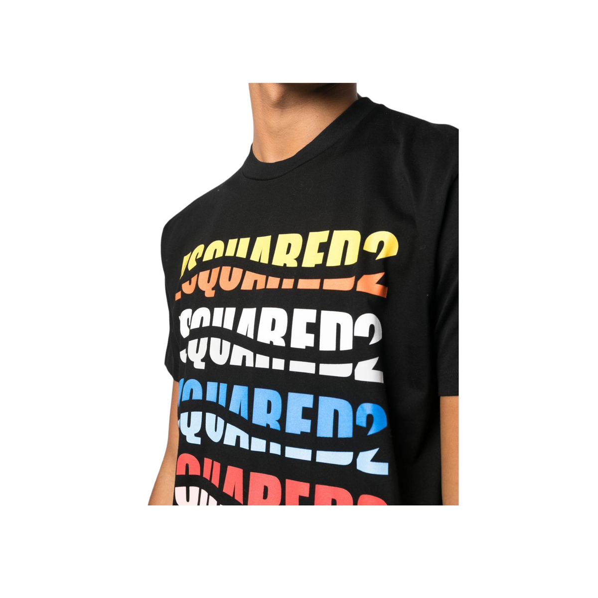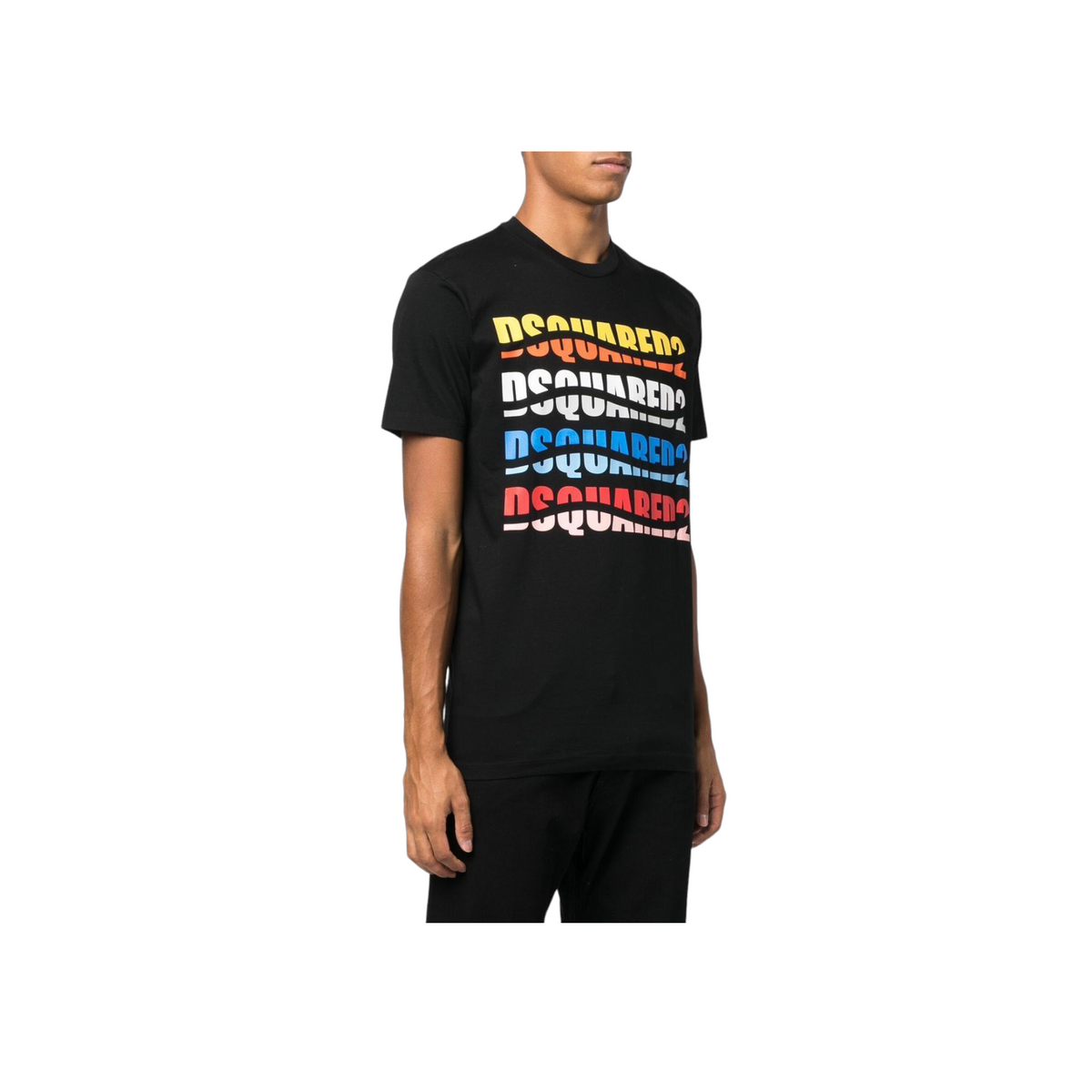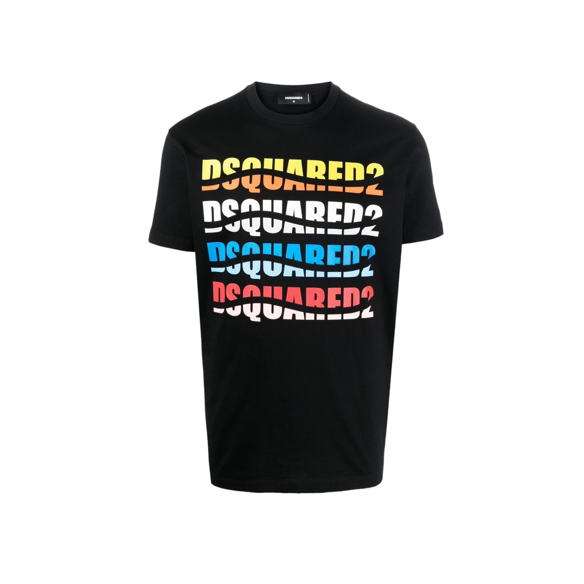 T-shirt mezza manica realizzata in cotone color nero con logo Dsquared2 sul petto. Lavorazione in jeresey ,girocollo, maniche corte ed orlo dritto. Adatta per ogni occasione, look ed attività.