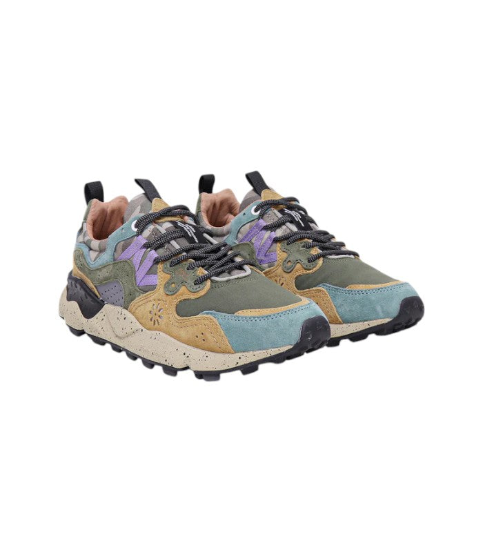 Flower Mountain Yamano 3 in camoscio grigio in Nylon militare a contrasto, occhielli rinforzati e stringhe ispirate ai modelli trek soletta interna in sughero antibatterico, suola in gomma ultraleggera con bordo sagomato battistrada garantisce una presa sicura su terreni scivolosi progettate per adattarsi al ritmo frenetico della vita metropolitana. Calzata comoda