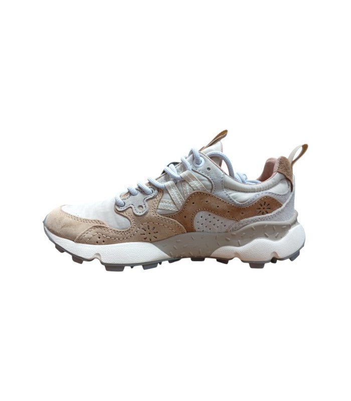 Mountain Flower yamano 3, sneaker in tessuto tecnico con inserti in suede multicolor, occhielli rinforzati e lacci trek. Soletta interna in sughero naturale antibatterico. Fondo in gomma ultra leggera con battistrada dentellato.