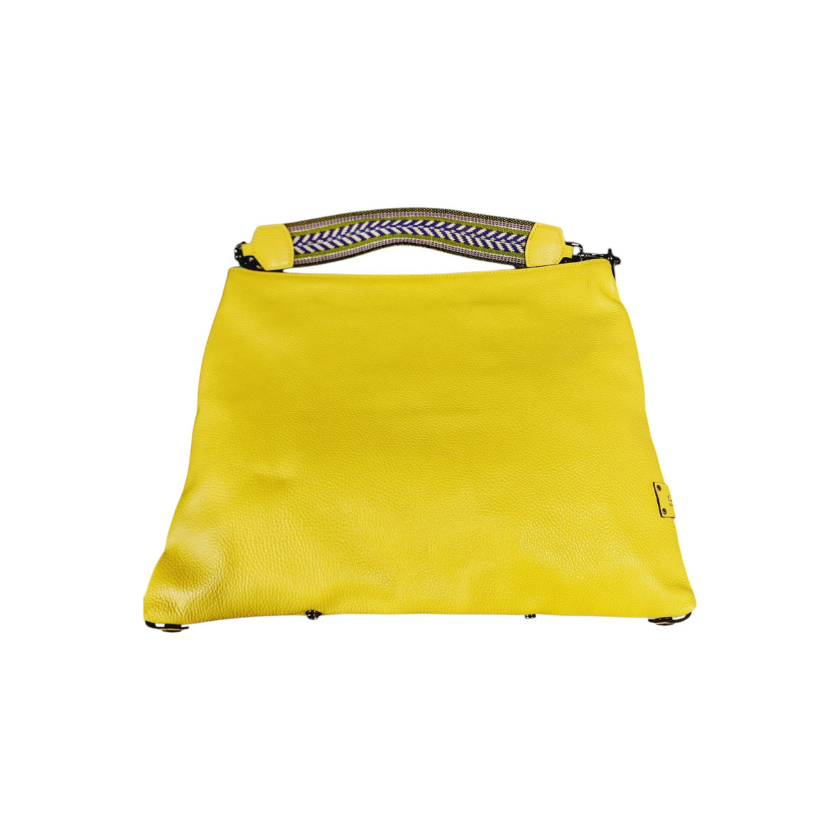 Borsa a spalla trasformabile FILIPPA in pelle di vitello martellata color "GIALLO" e tracolla a nastro