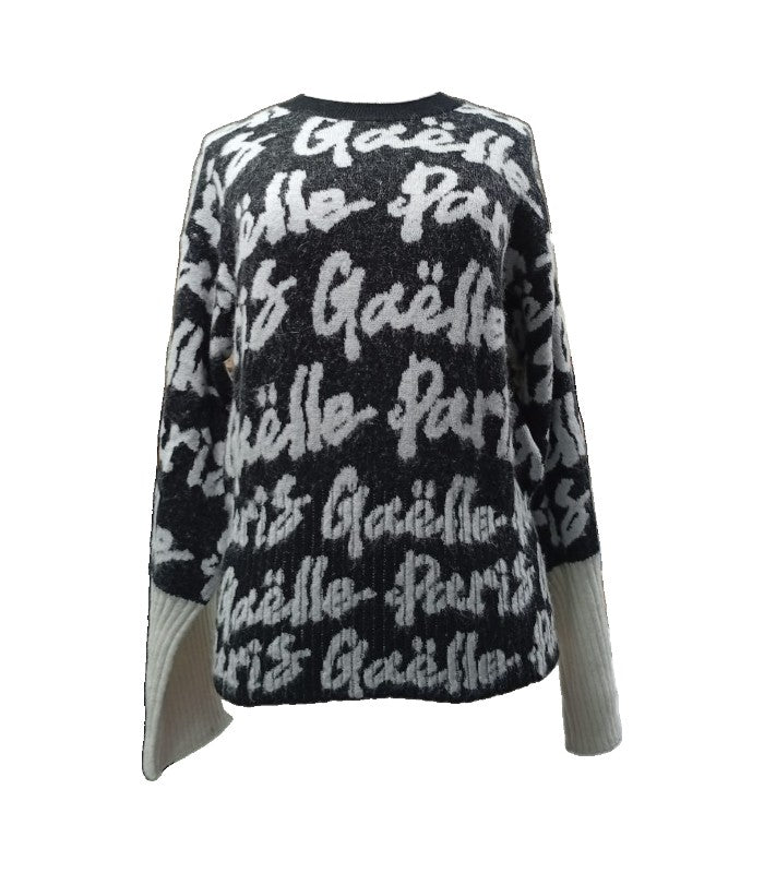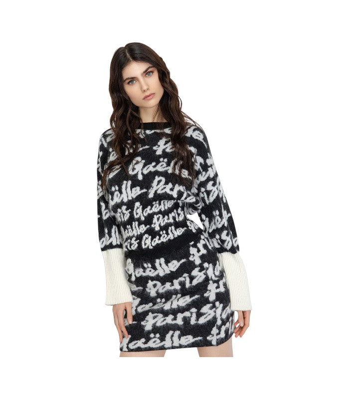 Pullover Cropped In Maglieria • Nero Offwhite - Gaëlle Paris