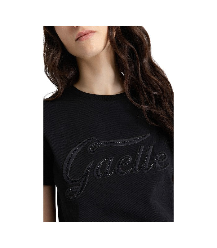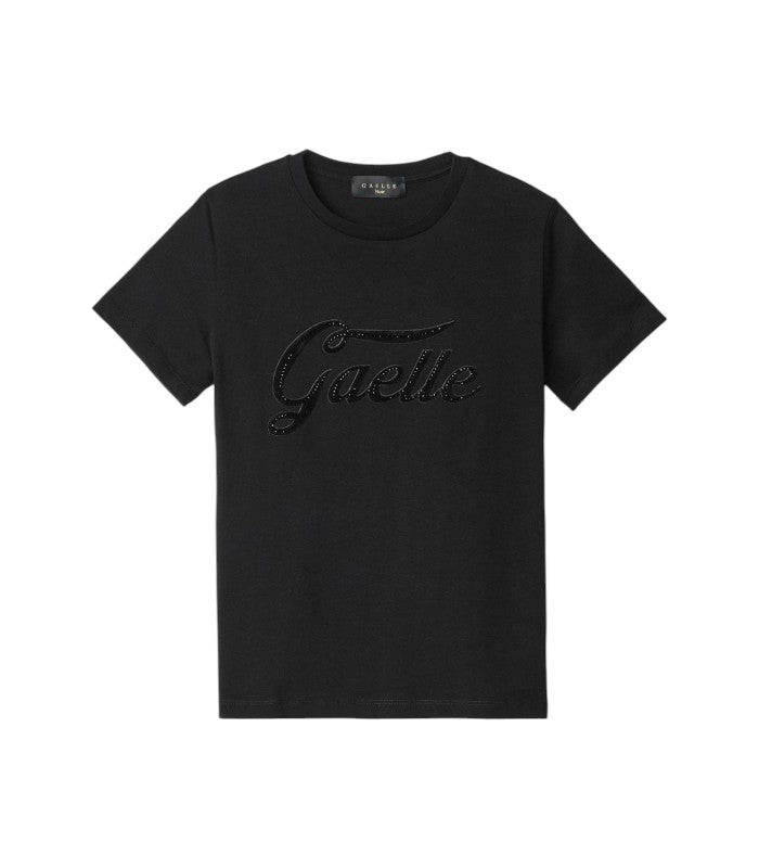 T-Shirt Paricollo Mezza Manica Con Personalizzazione In Ciniglia E Strass Termo Neri • Nero - Gaëlle Paris