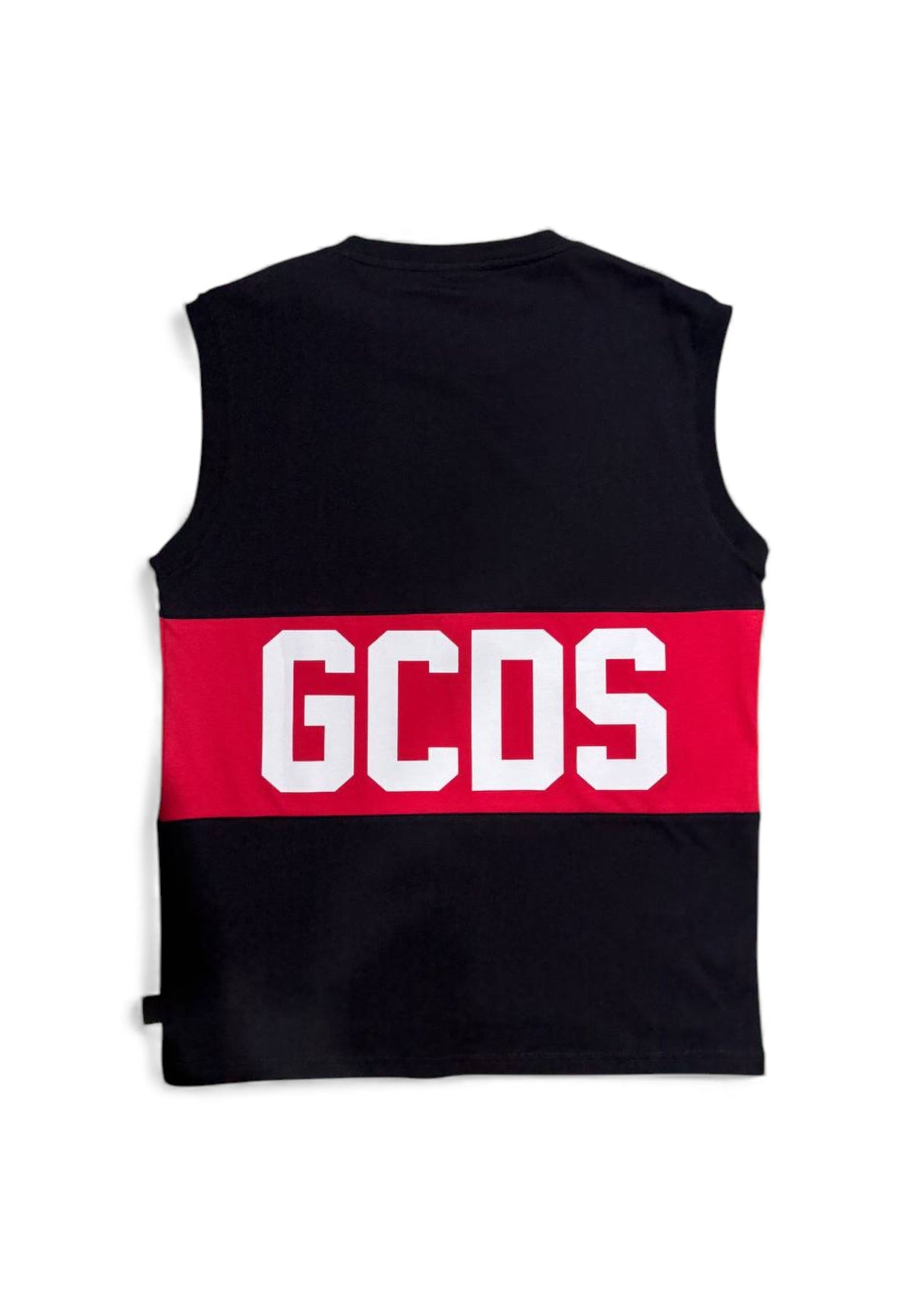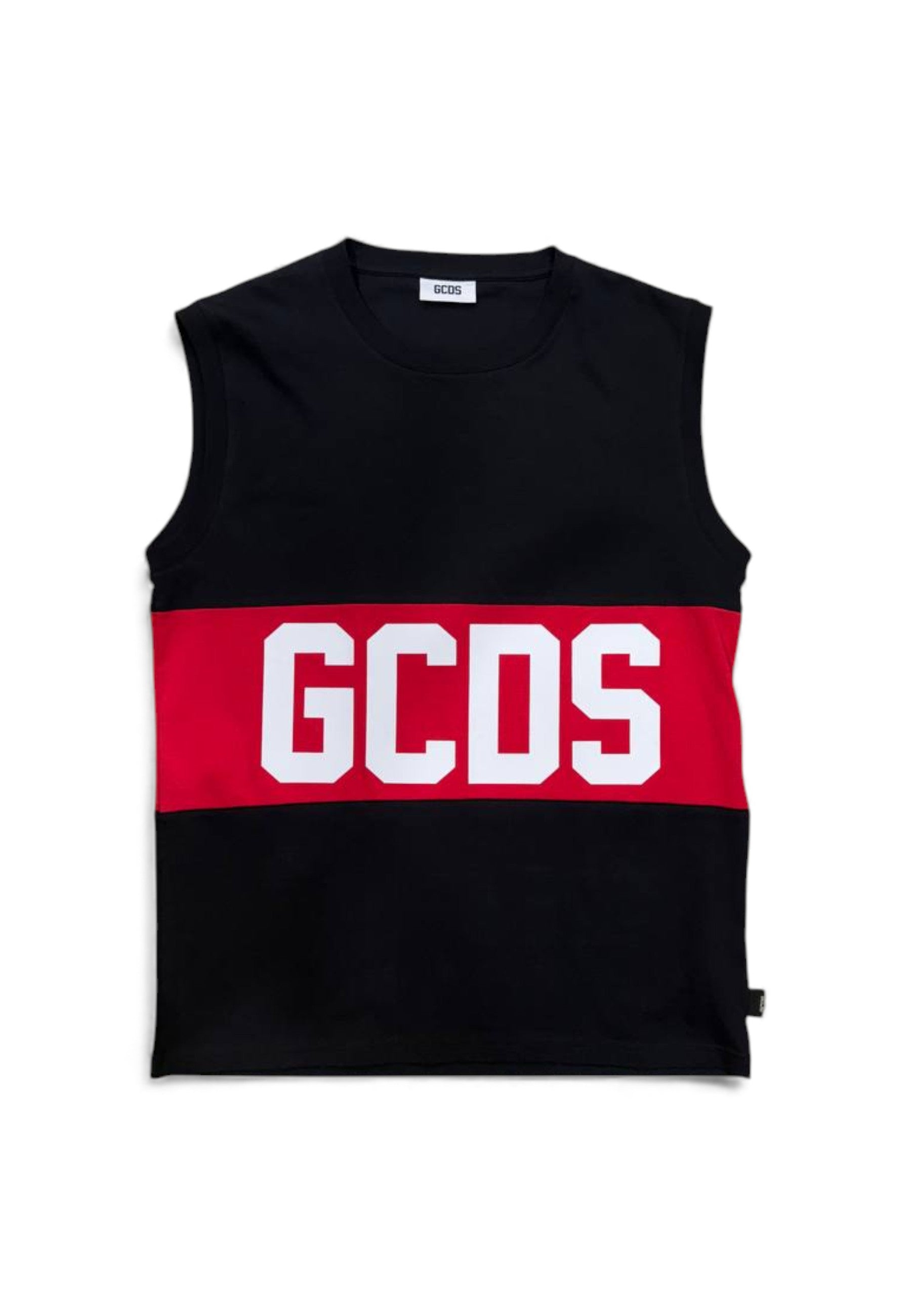 Canotta GCDS. Presenta una fascia rossa sia sul davanti che sul dietro con il logo in bianco. 100% cotone.