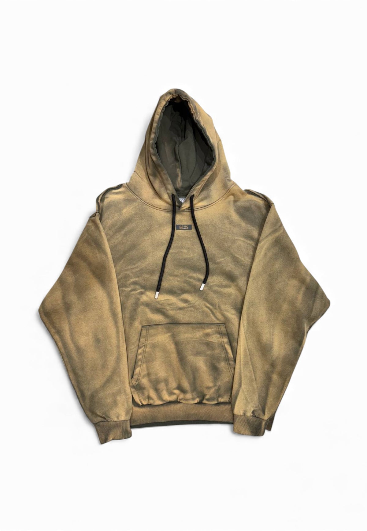 Felpa GCDS con cappuccio in cotone. Effetto lavaggio "solarizzato". Tasca a marsupio, logo patch sul petto e finiture a costine.
