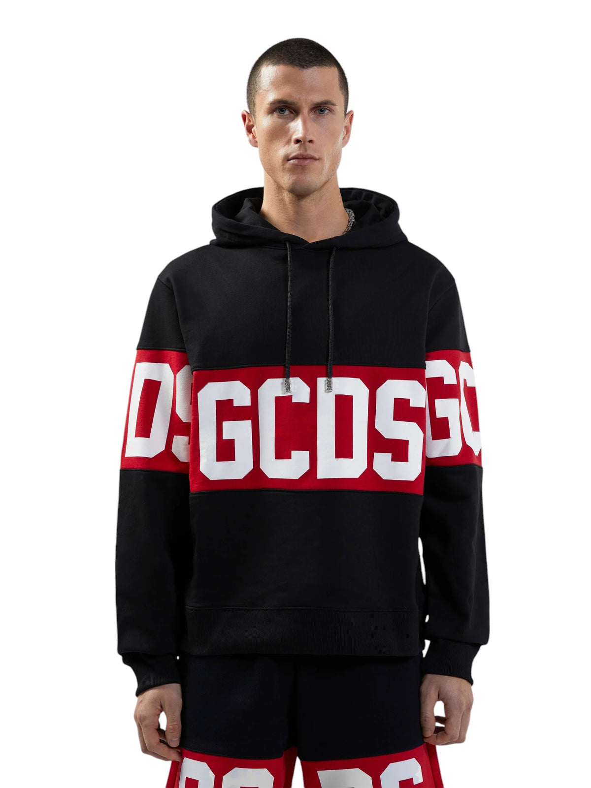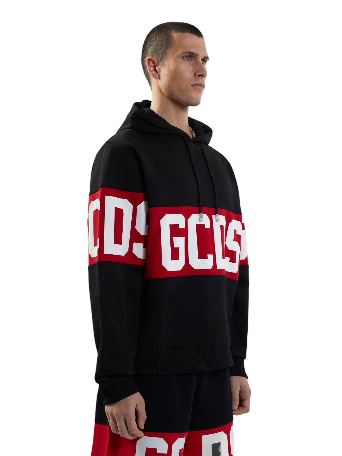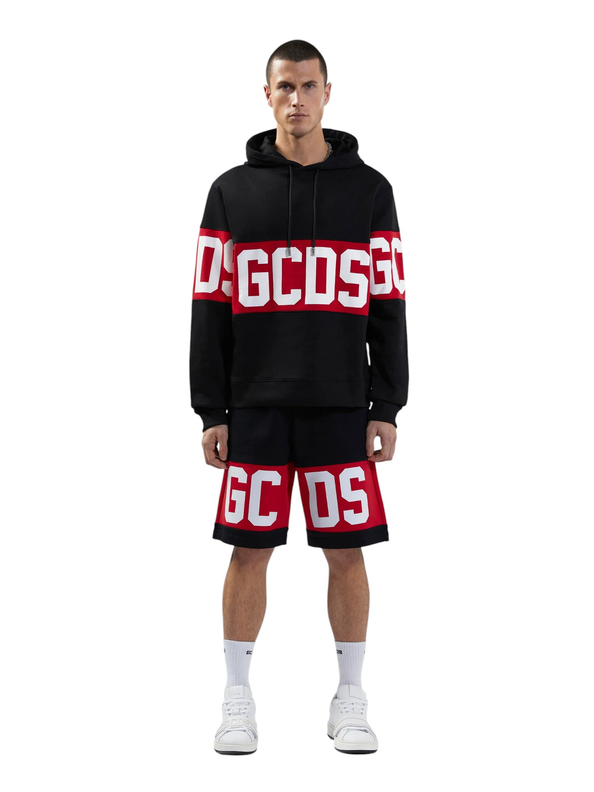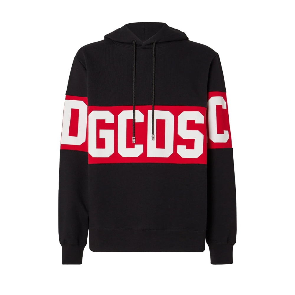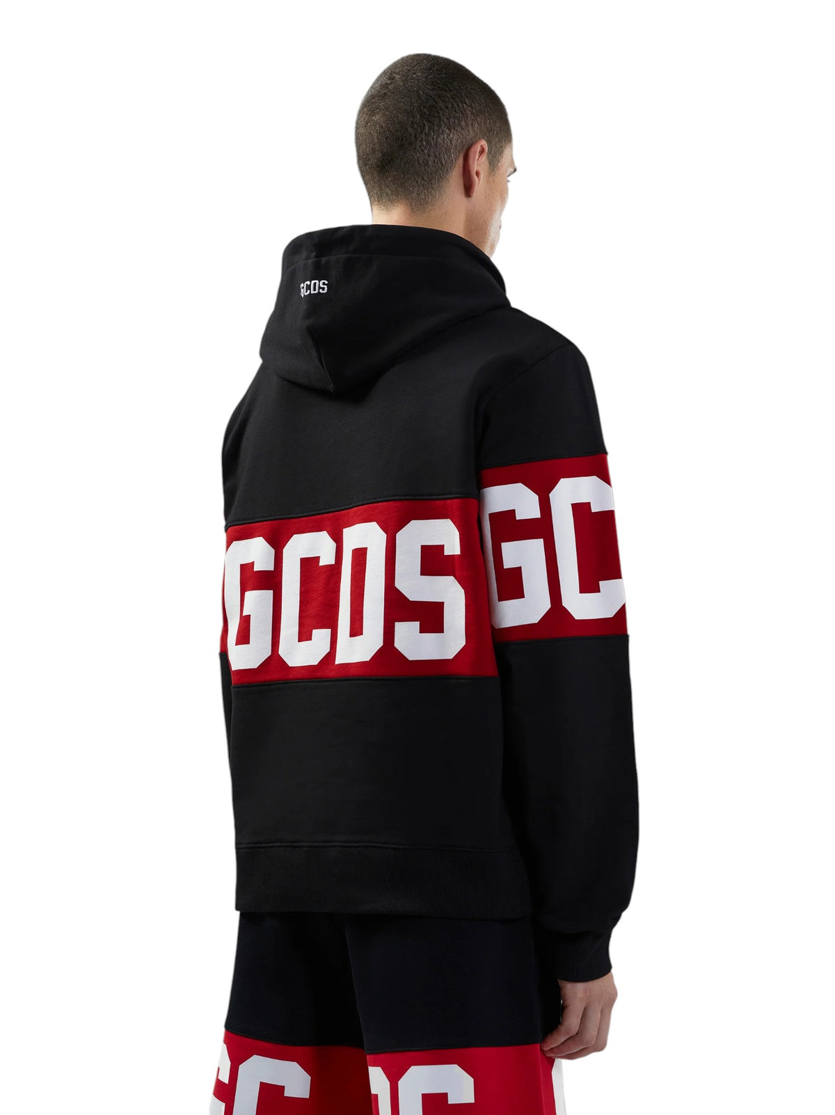 Felpa con maniche lunghe e cappuccio regolabile. Bandiera logo in serigrafia a contrasto applicata sul davanti, sul retro e sulle maniche. Stampa transfer GCDS sul cappuccio posteriore. Fit regular.