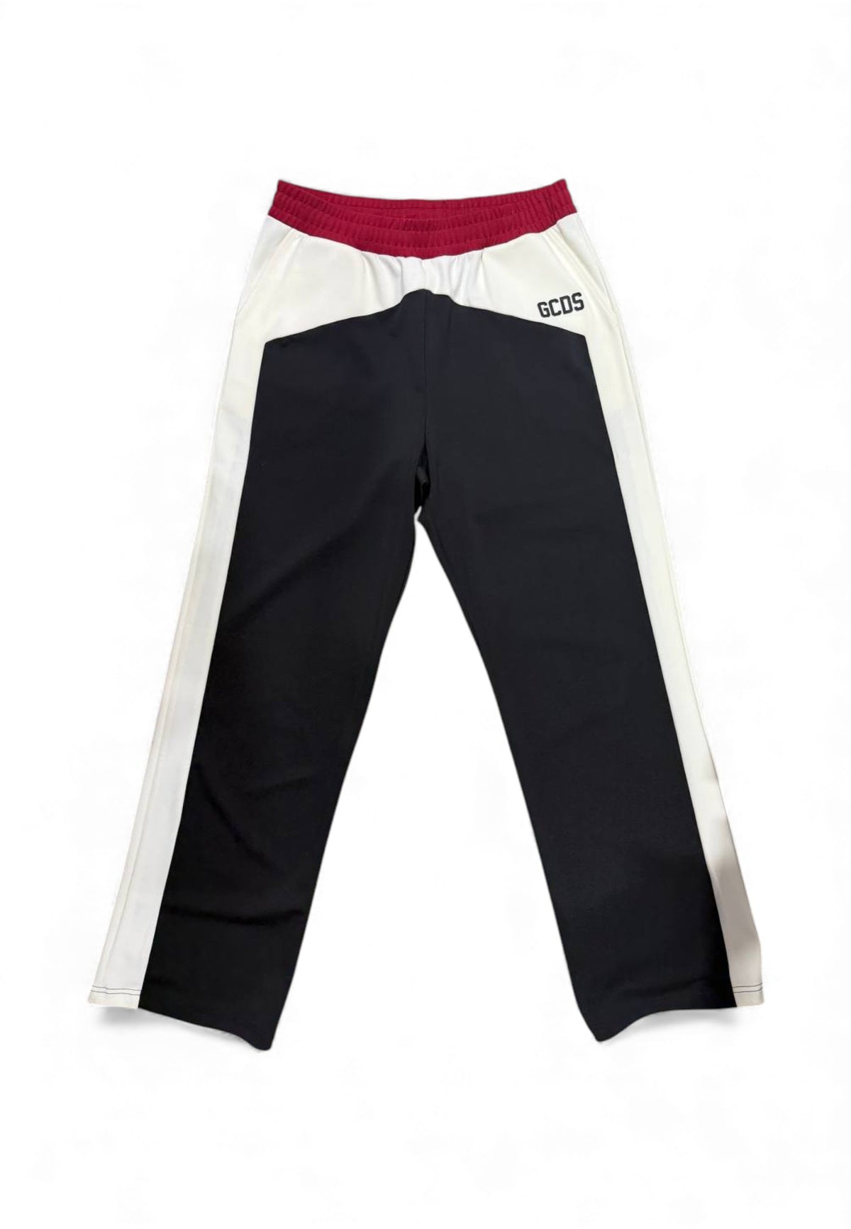 Pantaloni GCDS in cotone Nero e Bianco. Elastico in vita rosso. Tasche laterali. Patch logo applicato di lato. Larghi al fondo. Tasca a filetto sul retro.