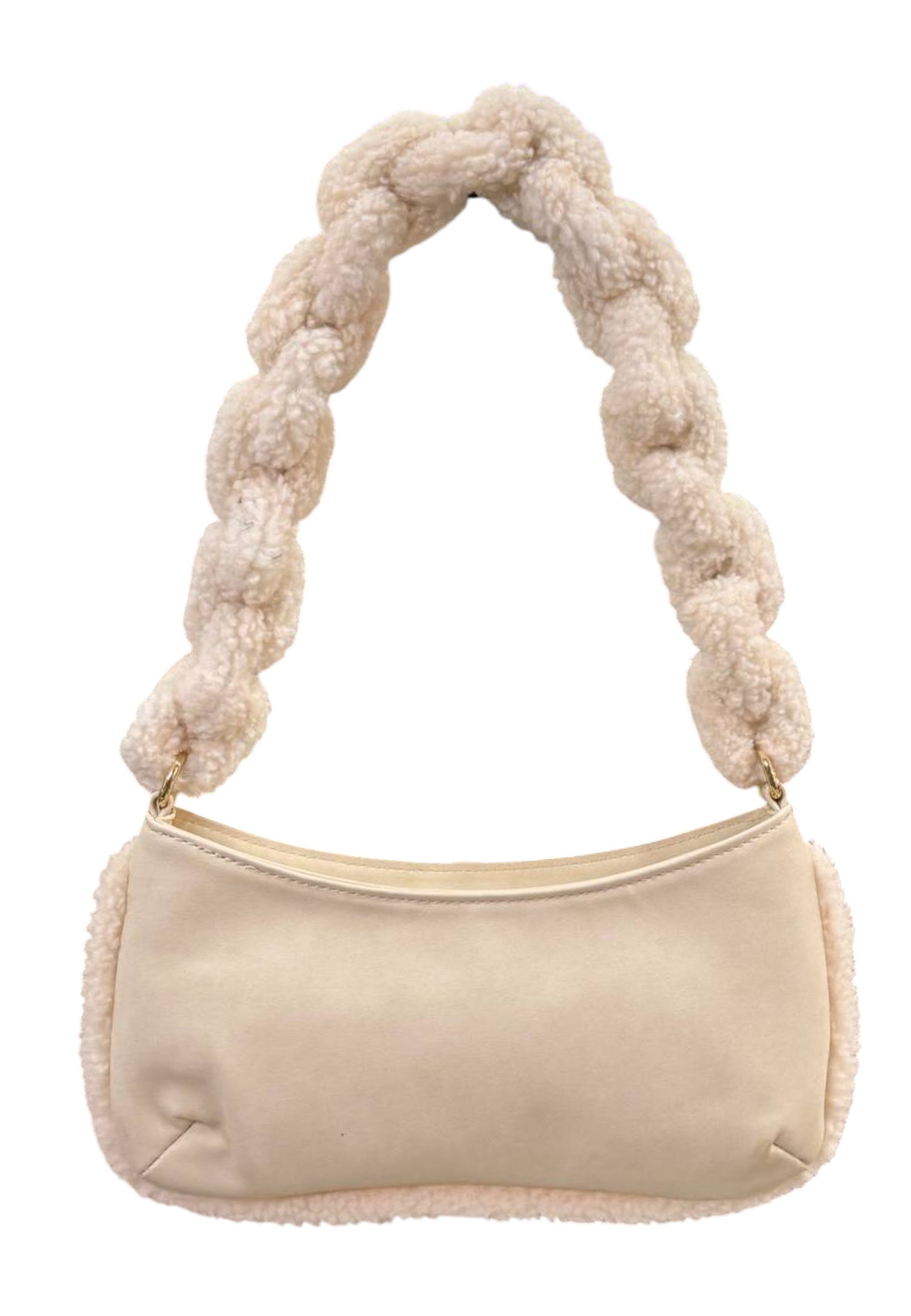Borsa firmata Gaëlle Paris in ecopelle rifinita con ecofur lungo i bordi con chiusura a zip, uno scomparto interno, manico rivestito in ecofur, tracolla rimuovibile e logo metallico.