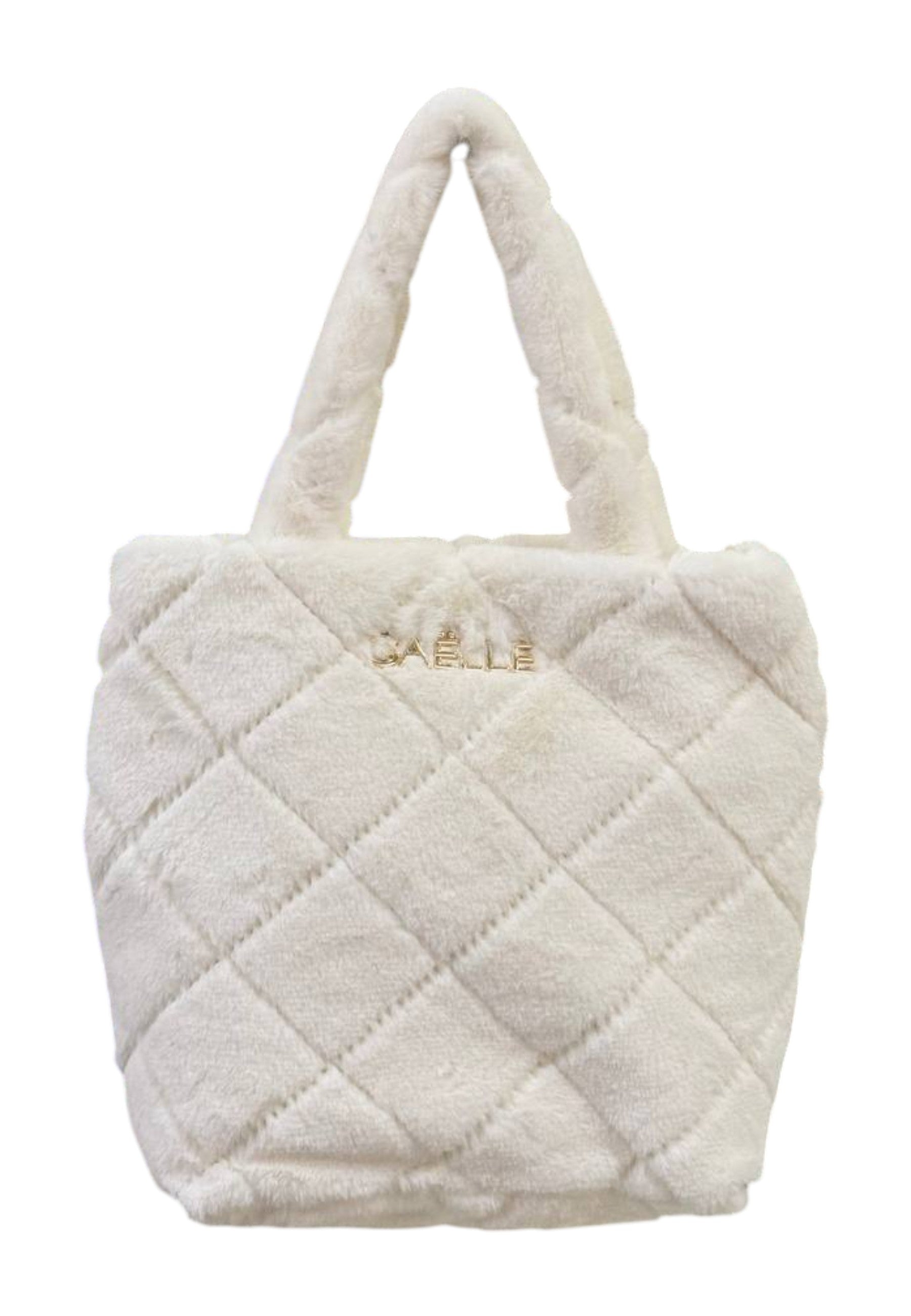 Borsa firmata Gaëlle Paris in ecofur con chiusura magnetica, due scomparti interni, tasca con zip, manico, tracolla rimuovibile e logo metallico.