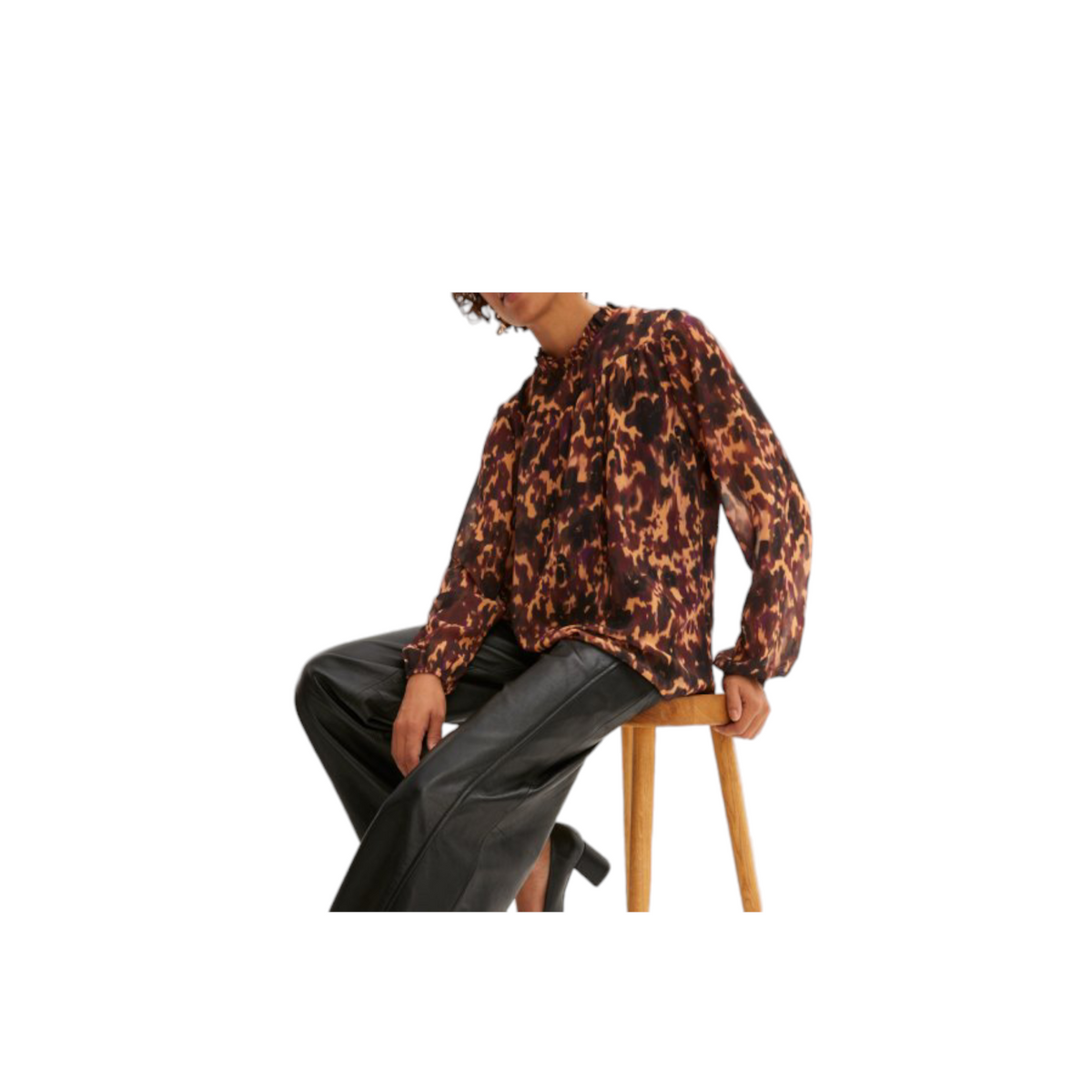 Graziosa camicia Salvatore Ferragamo con fantasia mista multicolore, orlo dritto, scollo rotondo, indossata con jeans o pantaloni realizza un outfit unico per serate ed eventi. Ideale per chi ama le grandi firme. Oversize, taglia unica.