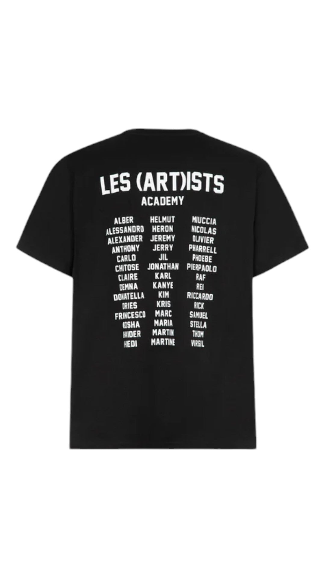 T-shirt in pregiato cotone di colore nero con iconica stampa LES (ART)ISTS ACADEMY sul retro, patch logata sul fondo nella parte anteriore, vestibilità regolare.