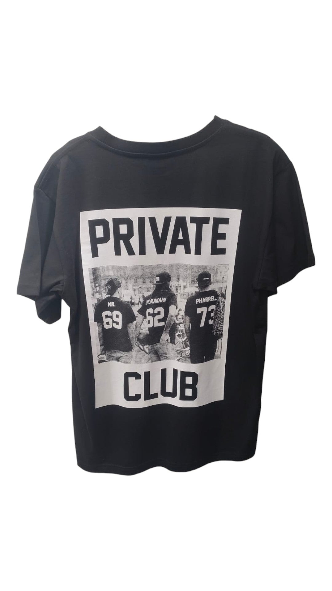 T-shirt in pregiato cotone di colore nero con iconica stampa PRIVATE CLUB sul retro, patch logata sul fondo nella parte anteriore, vestibilità regolare.