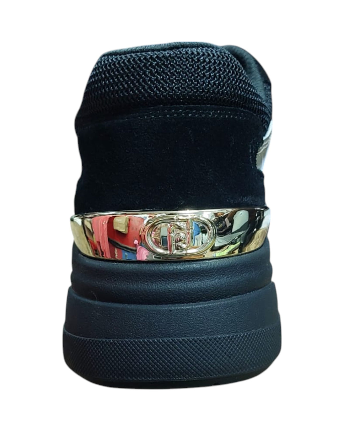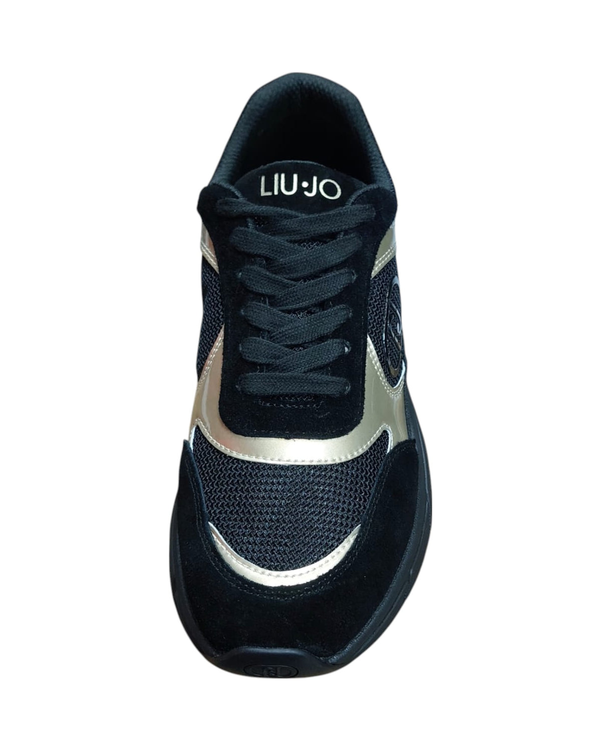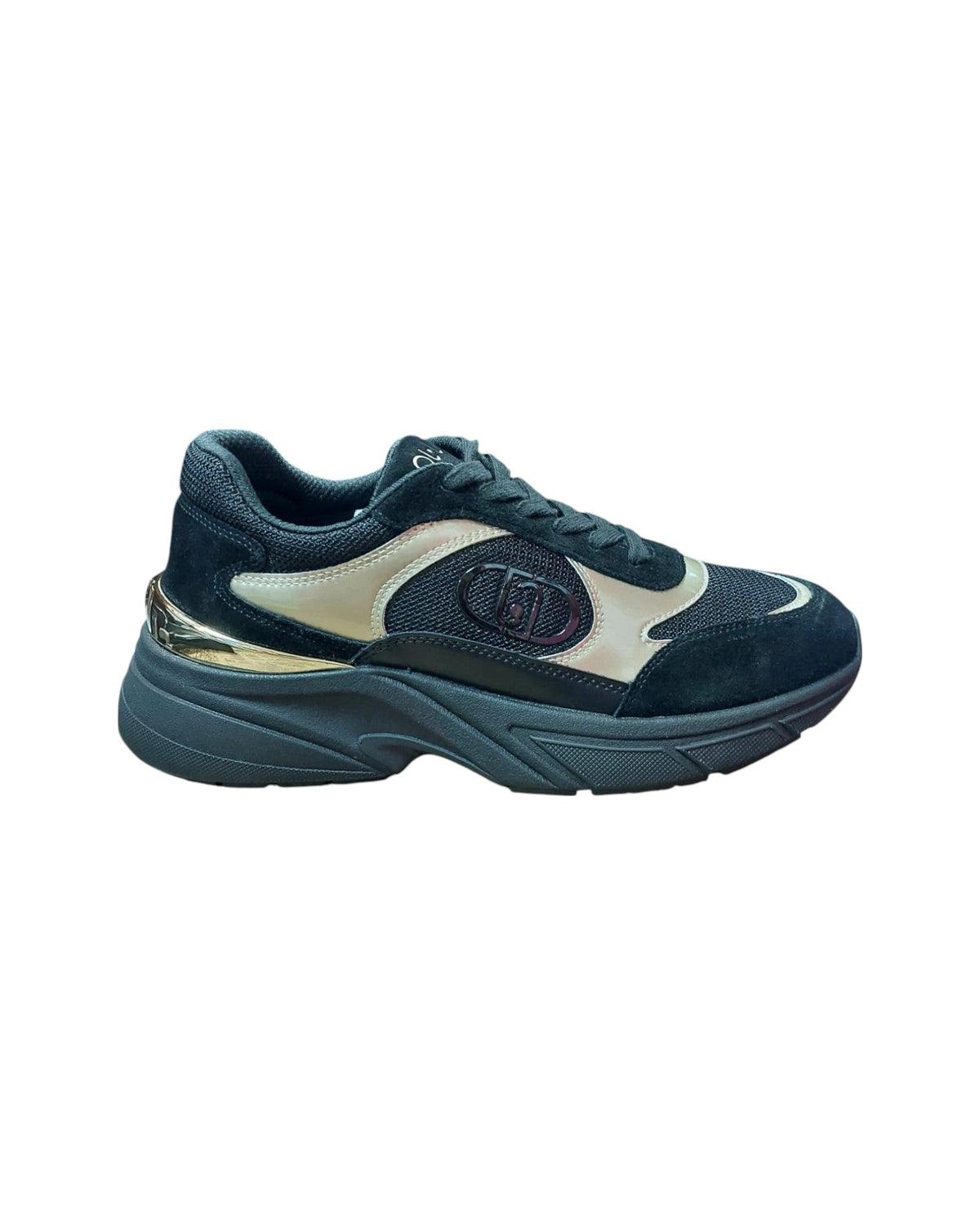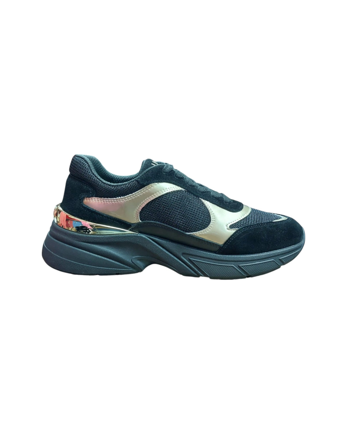 SNEAKER COW SUEDE/MESH/METAL BLACK/LIGHT GOLD