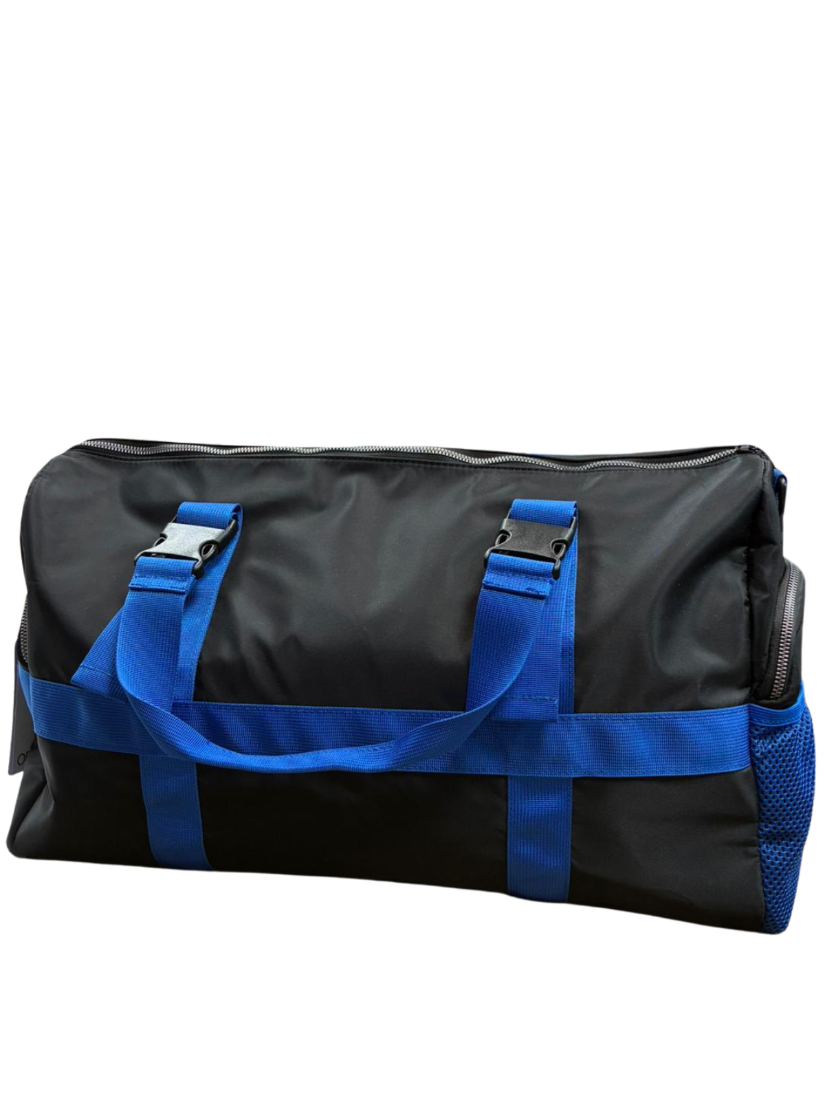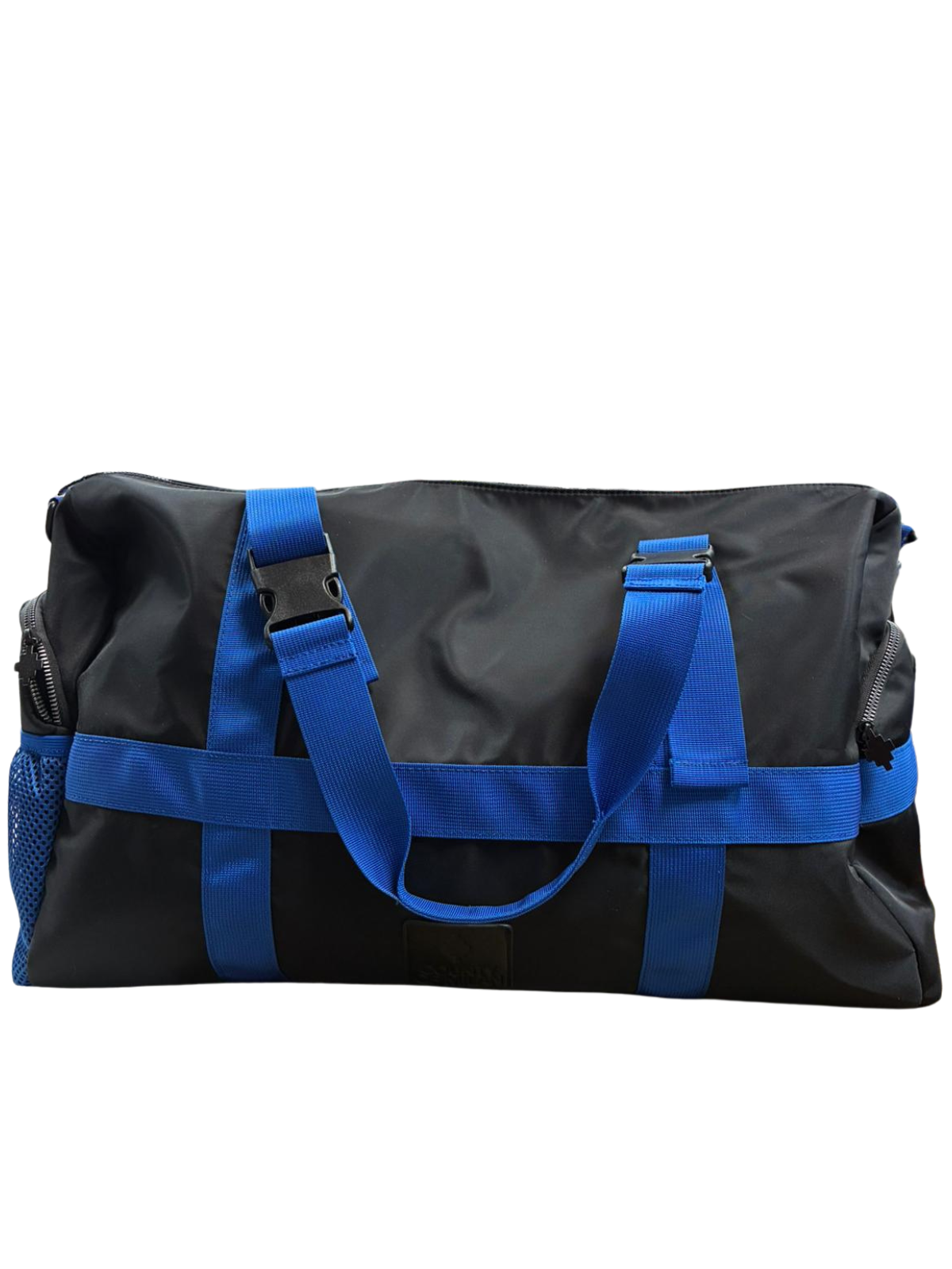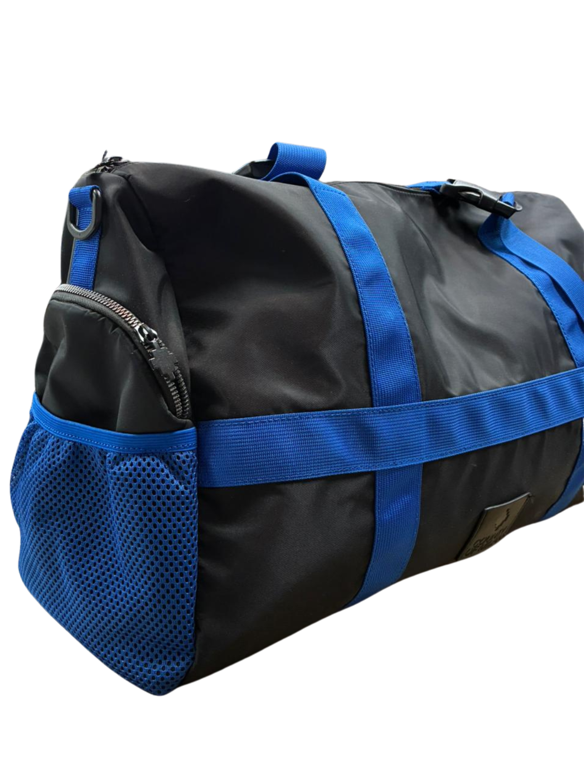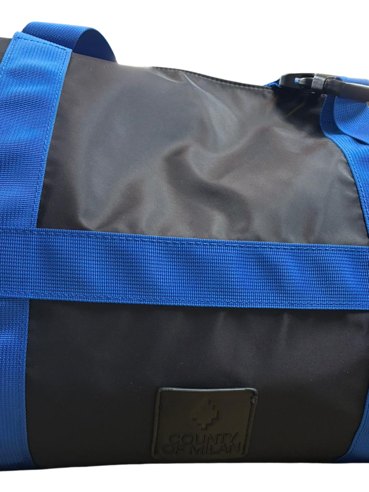 Il borsone Marcelo Burlon® Country of Milan è un accessorio versatile e di alta qualità, realizzato con materiali resistenti e dal design moderno. La struttura è in tessuto nero lucido e impermeabile, con rifiniture in nylon blu elettrico che includono due robuste maniglie e cinture regolabili per un trasporto comodo e sicuro. Il modello presenta tasche laterali in mesh per accessori e una chiusura principale a zip, ideale per viaggi, palestra o uso quotidiano. Il design urbano e minimalista rende questo borsone perfetto per chi apprezza lo stile streetwear di alta gamma firmato Marcelo Burlon.
