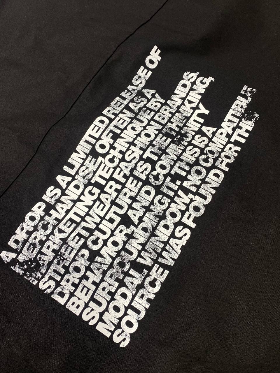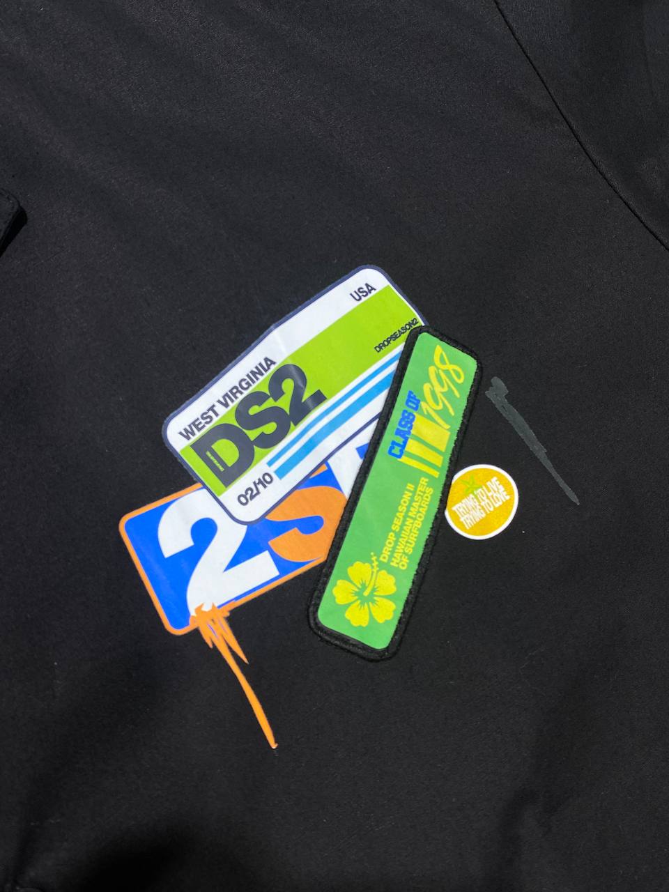 Camicetta nera DS2 100% a manica corta con logo colorato stampato frontalmente in alto a destra e maxi testo sul retro.