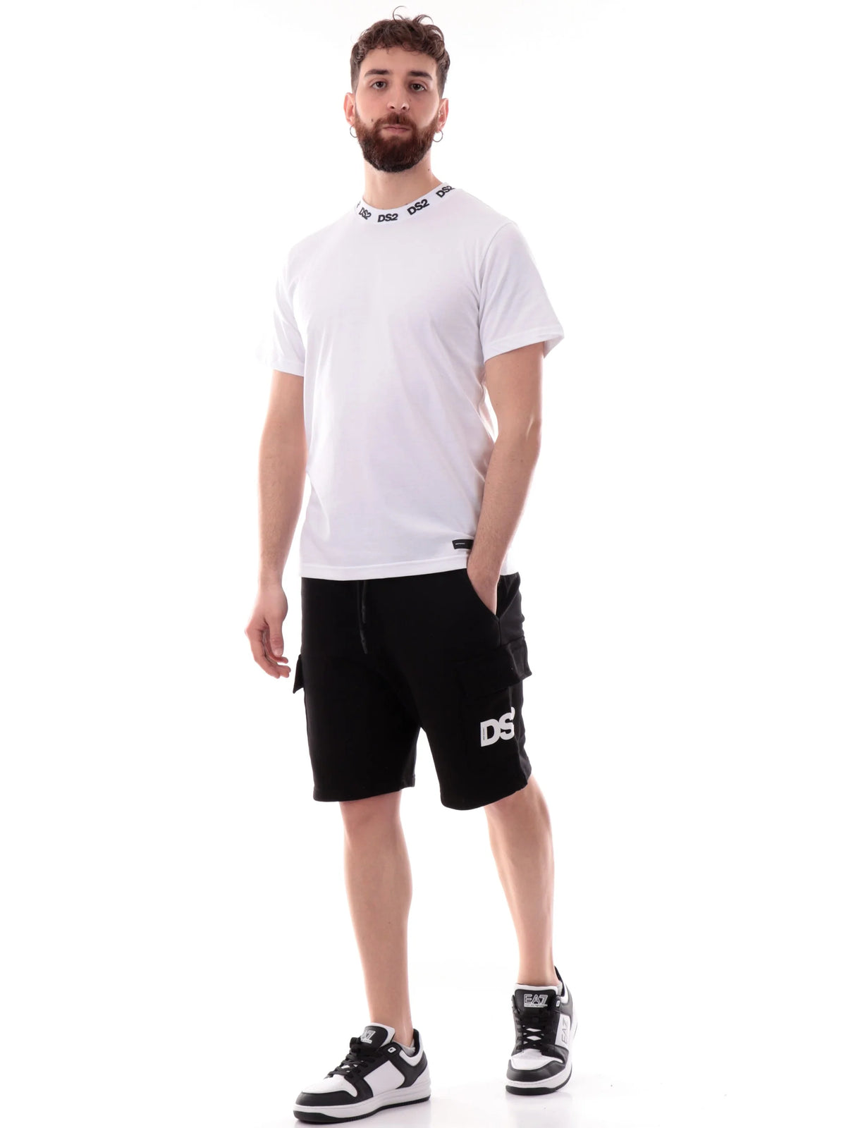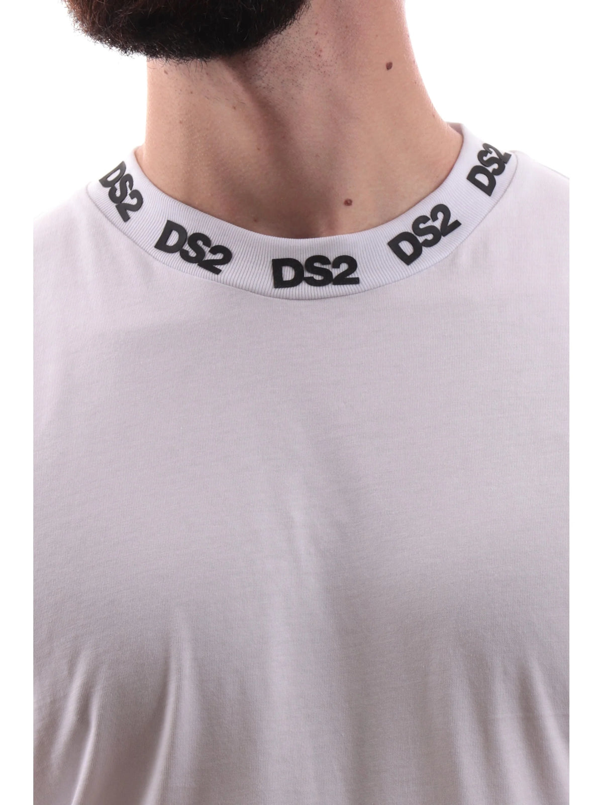 T-shirt DS2 bianca da uomo con logo DS2 bianco sul colletto, realizzata in 100% puro cotone.