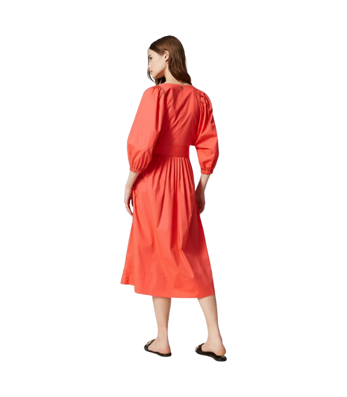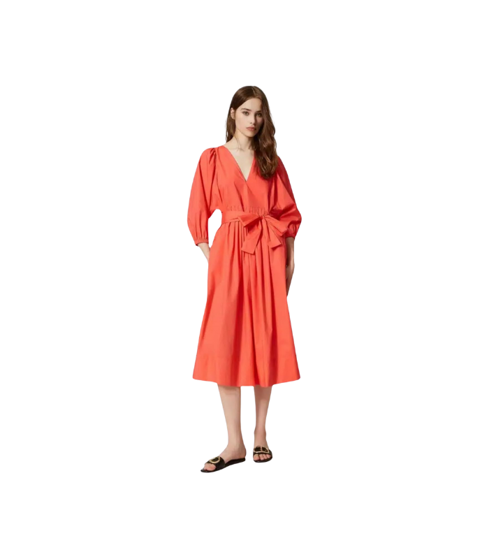 Questo elegante vestito midi da donna in vivace tonalità corallo è perfetto per chi cerca un look raffinato e femminile. Il design presenta uno scollo a V che dona slancio alla figura, mentre le maniche a palloncino a tre quarti con polsini elasticizzati aggiungono un tocco di romanticismo contemporaneo. La cintura annodata in vita crea una silhouette definita e lusinghiera, accentuando il punto vita e conferendo movimento al capo. La gonna midi con pieghe fluide offre comfort e libertà di movimento, rendendolo ideale sia per occasioni speciali che per eventi più informali. Il tessuto di qualità garantisce una vestibilità confortevole e una caduta impeccabile. Questo vestito versatile può essere abbinato con sandali per un look estivo o con tacchi eleganti per serate più formali. Un capo essenziale per ogni guardaroba femminile che unisce stile classico e dettagli moderni. Consultare la tabella delle taglie prima dell'acquisto per garantire la vestibilità perfetta.