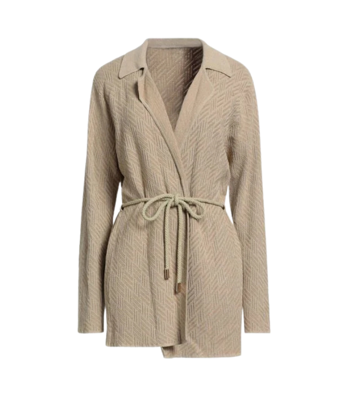Maglia jacquard, maglia leggera, senza applicazioni, tinta unita, maniche lunghe, chiusura con laccio, lavare a mano, non candeggiare, non asciugare in asciugatrice. 29% acrilico, 26% cotone, 26% poliammide, 19% viscosa.
