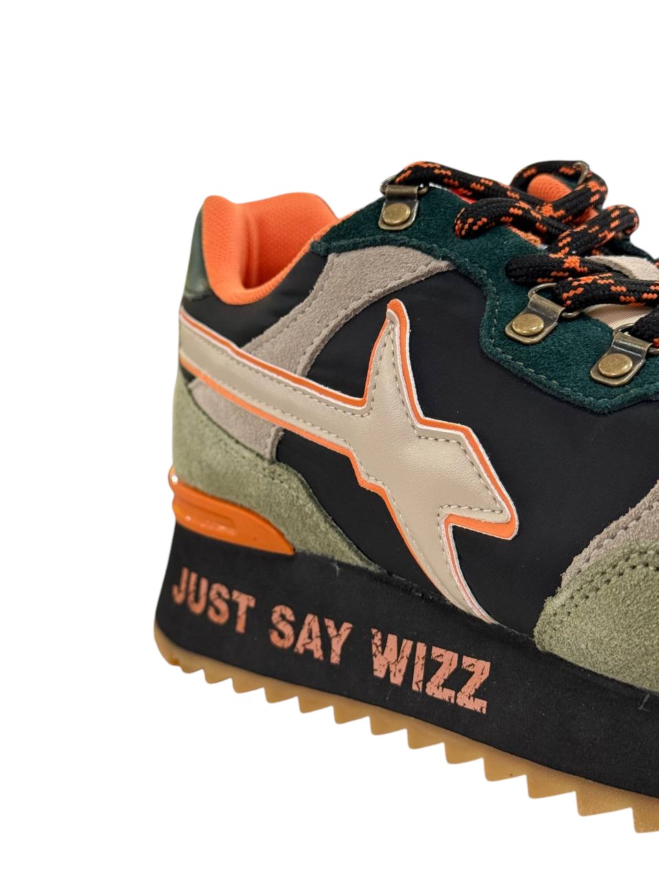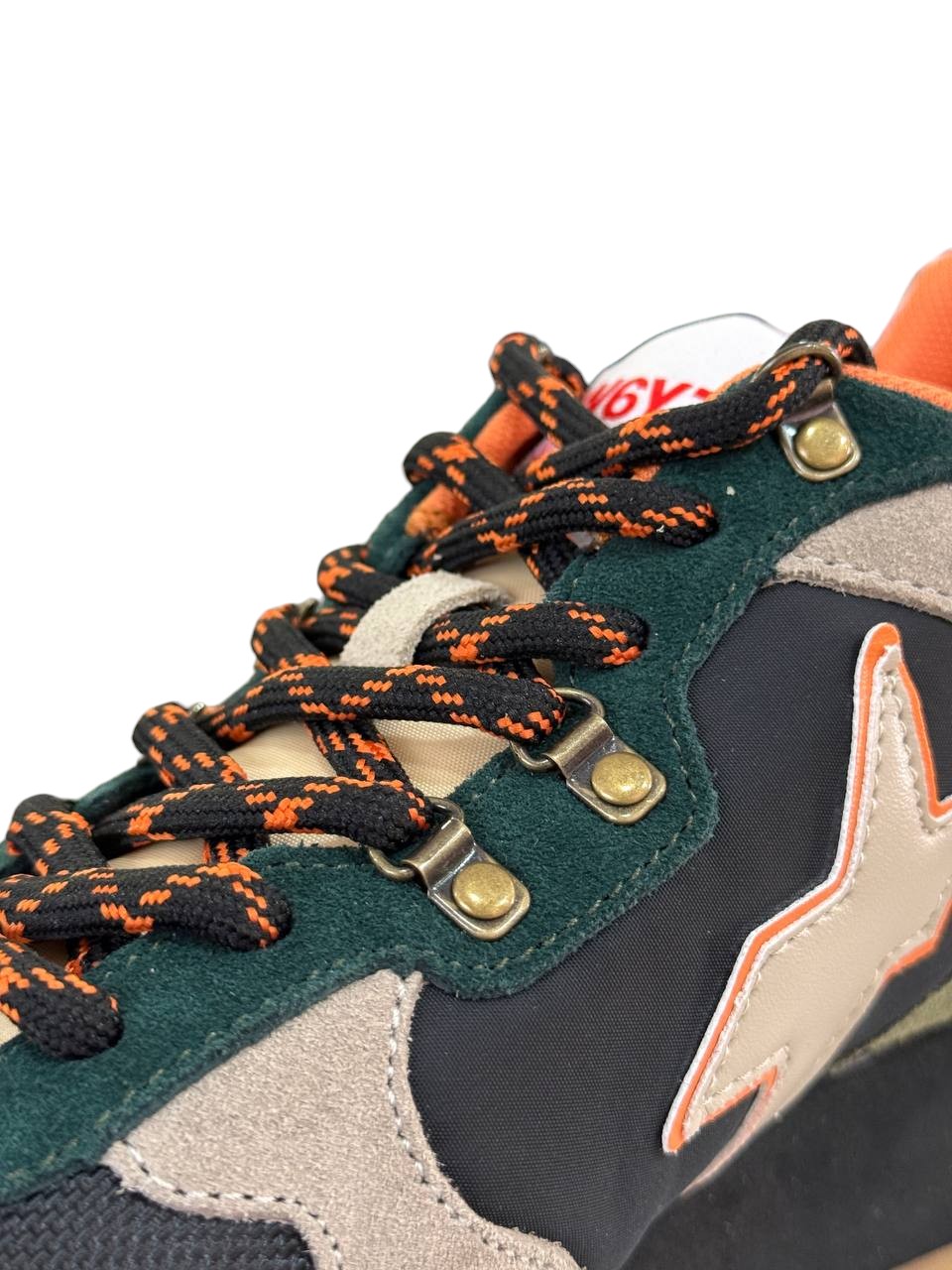 Affronta la giungla urbana con tutta la grinta delle comodissime sneaker in tessuto tecnico, rifinite da una suola spessa in gomma ultra leggera. Gli occhielli metallici e i lacci spessi sottolineano lo spirito outdoor del modello, completato dal contrasto cromatico del topponcino e dello spoiler sotto il tallone.