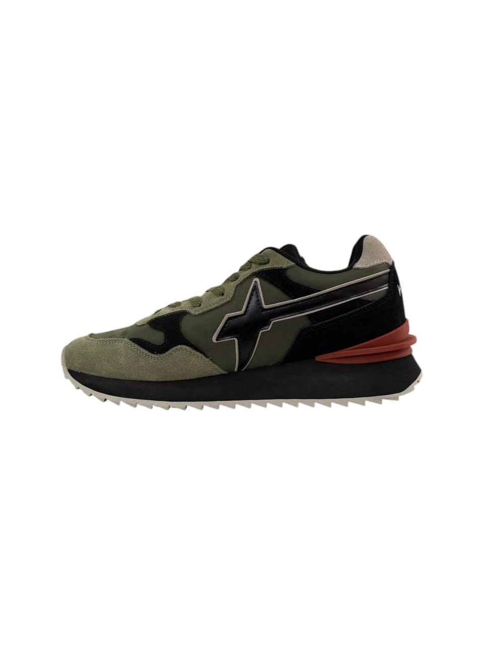 Affronta la giungla urbana con tutta la grinta delle comodissime sneaker in tessuto tecnico, rifinite da una suola spessa in gomma ultra leggera. Gli occhielli metallici e i lacci spessi sottolineano lo spirito outdoor del modello, completato dal contrasto cromatico del topponcino e dello spoiler sotto il tallone.