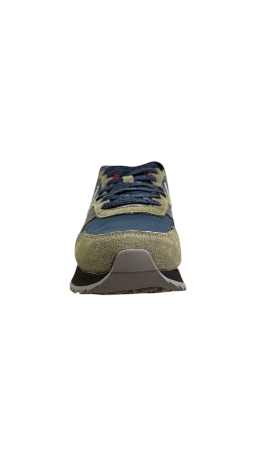 Affronta la giungla urbana con tutta la grinta delle comodissime sneaker in tessuto tecnico, rifinite da una suola spessa in gomma ultra leggera. Gli occhielli metallici e i lacci spessi sottolineano lo spirito outdoor del modello, completato dal contrasto cromatico del topponcino e dello spoiler sotto il tallone.