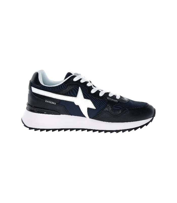 Affronta la giungla urbana con tutta la grinta delle comodissime sneaker in tessuto tecnico, rifinite da una suola spessa in gomma ultra leggera. Gli occhielli metallici e i lacci spessi sottolineano lo spirito outdoor del modello, completato dal contrasto cromatico del topponcino e dello spoiler sotto il tallone.