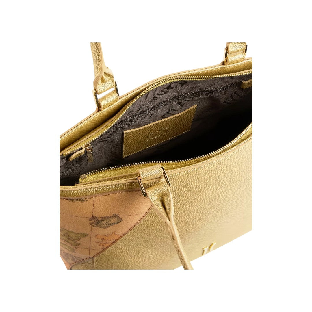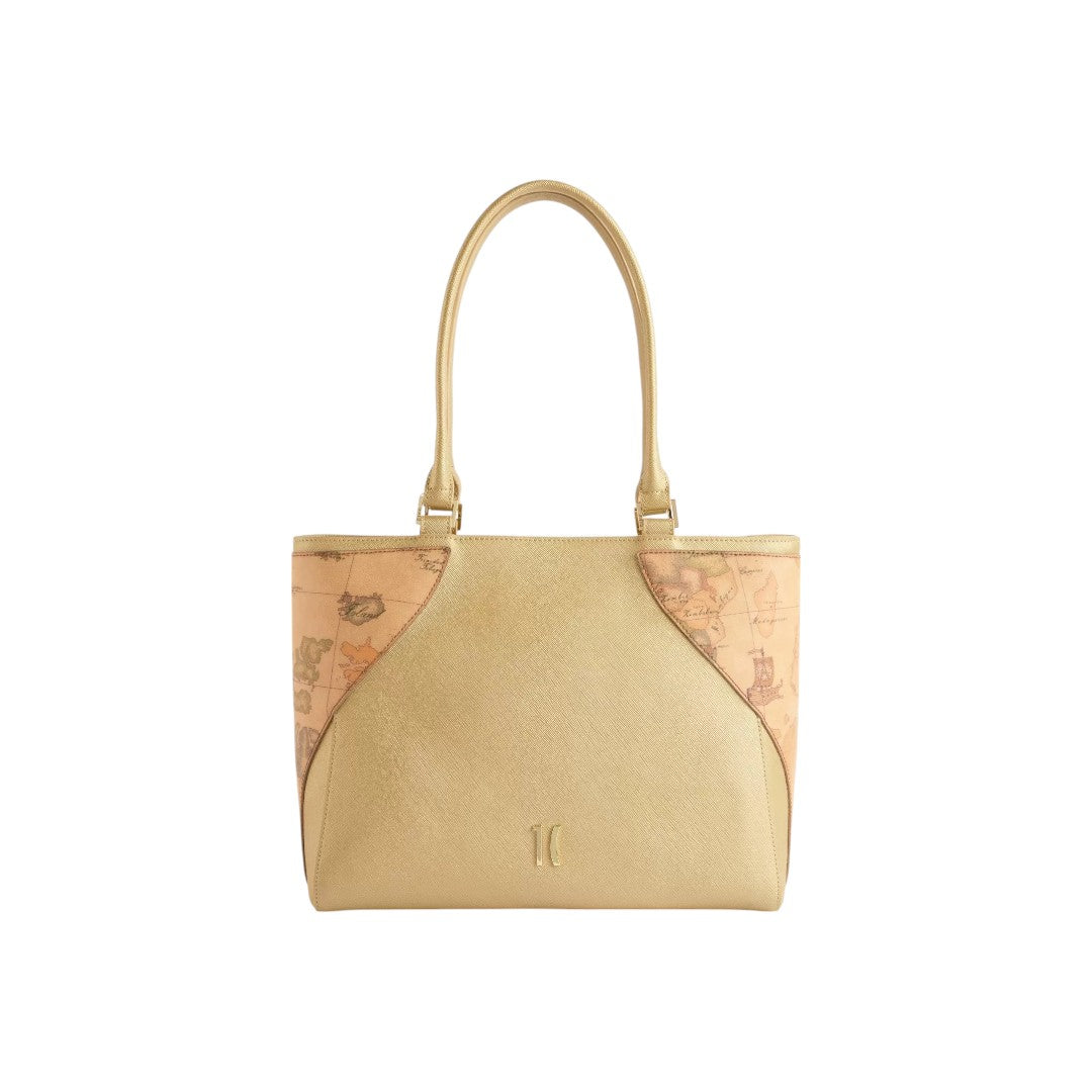 Realizzata in tessuto goffrato stampa saffiano, la borsa shopping Flying City esibisce due ampi inserti laterali in tessuto Geo Classic, rappresentazione stilizzata di figure alate. Sul fronte, l'inserto crea un gioco visivo che dà risalto al logo 1C, mentre l'effetto perlato del tessuto dà risalto alla tonalità Oro Chiaro rendendola ancora più brillante. Grazie ai volumi pratici e capienti suddivisi in più tasche è la borsa ideale da sfoggiare in città, dallo stile distintivo e minimal che si abbina perfettamente ai look invernali.