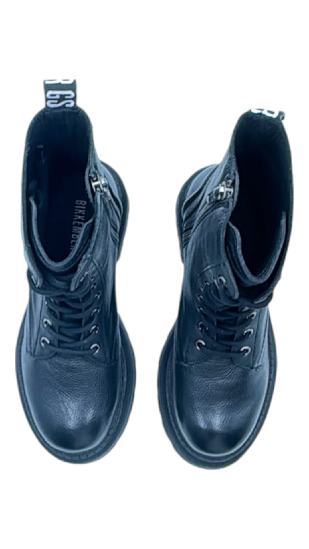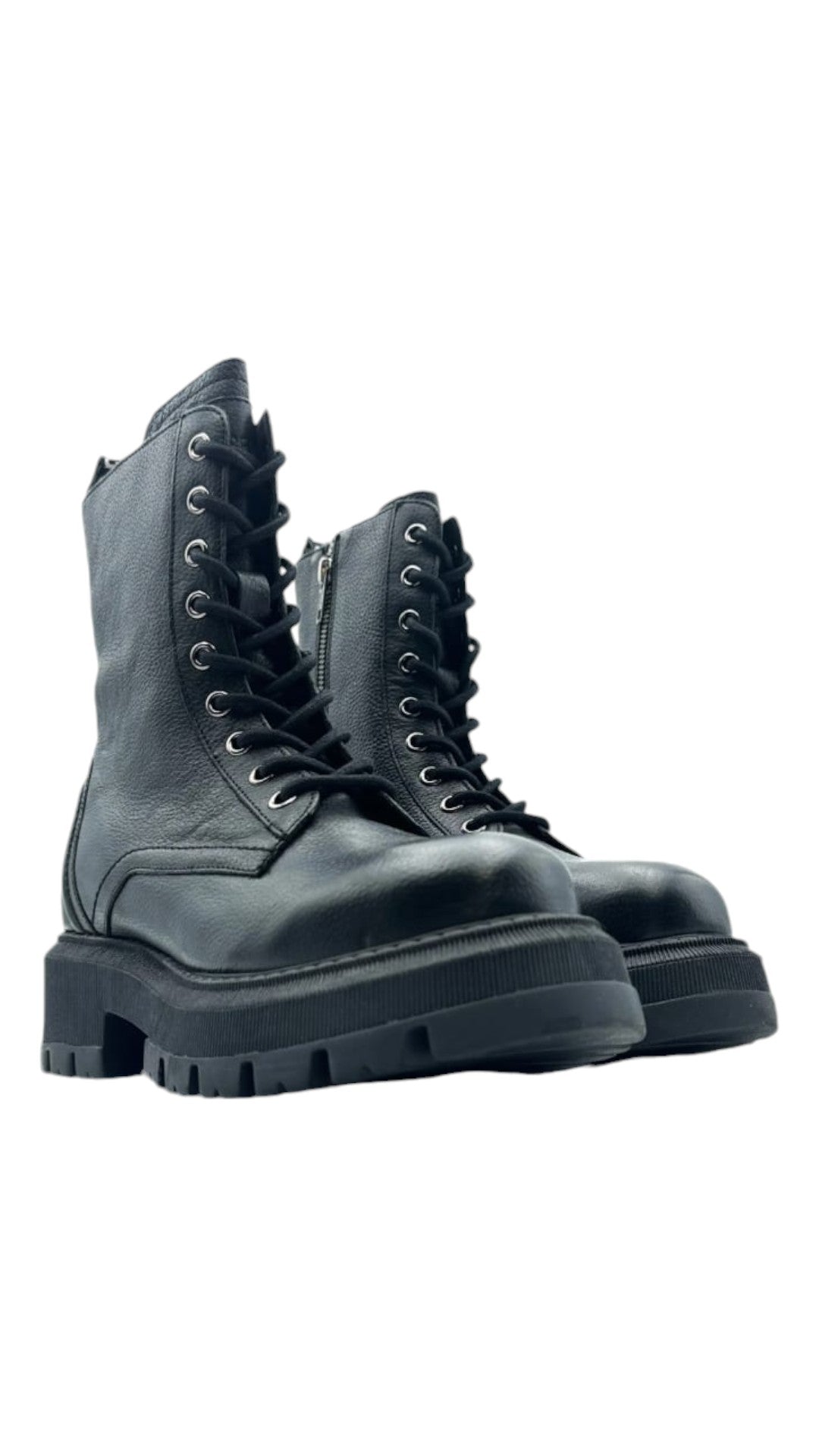 Ledersneaker mit laminierten Details. Gummisohle mit dreifacher Höhe und geriffeltem Profil. Verschluss mit Schnürsenkeln.