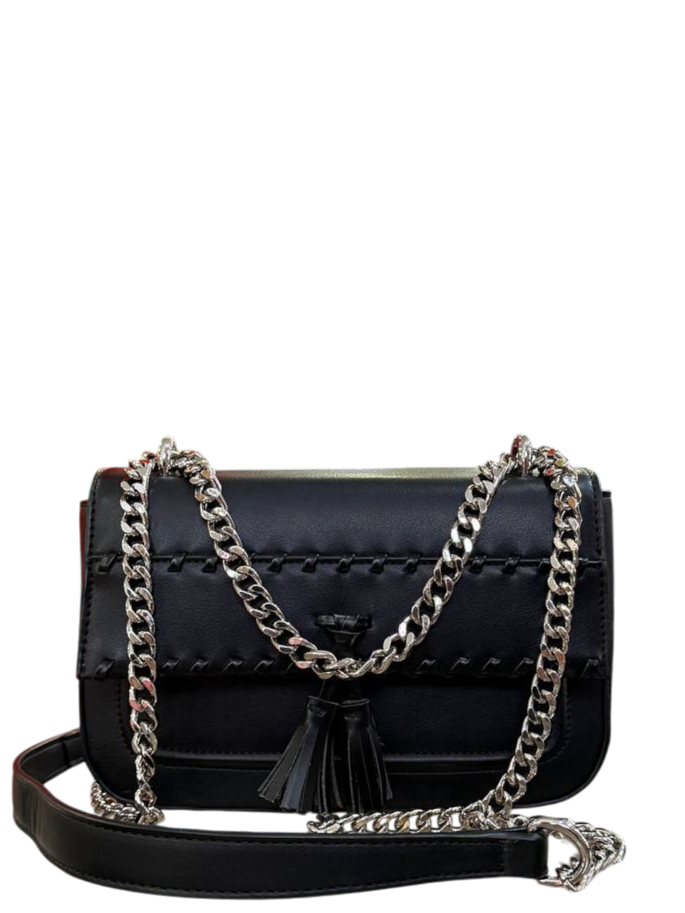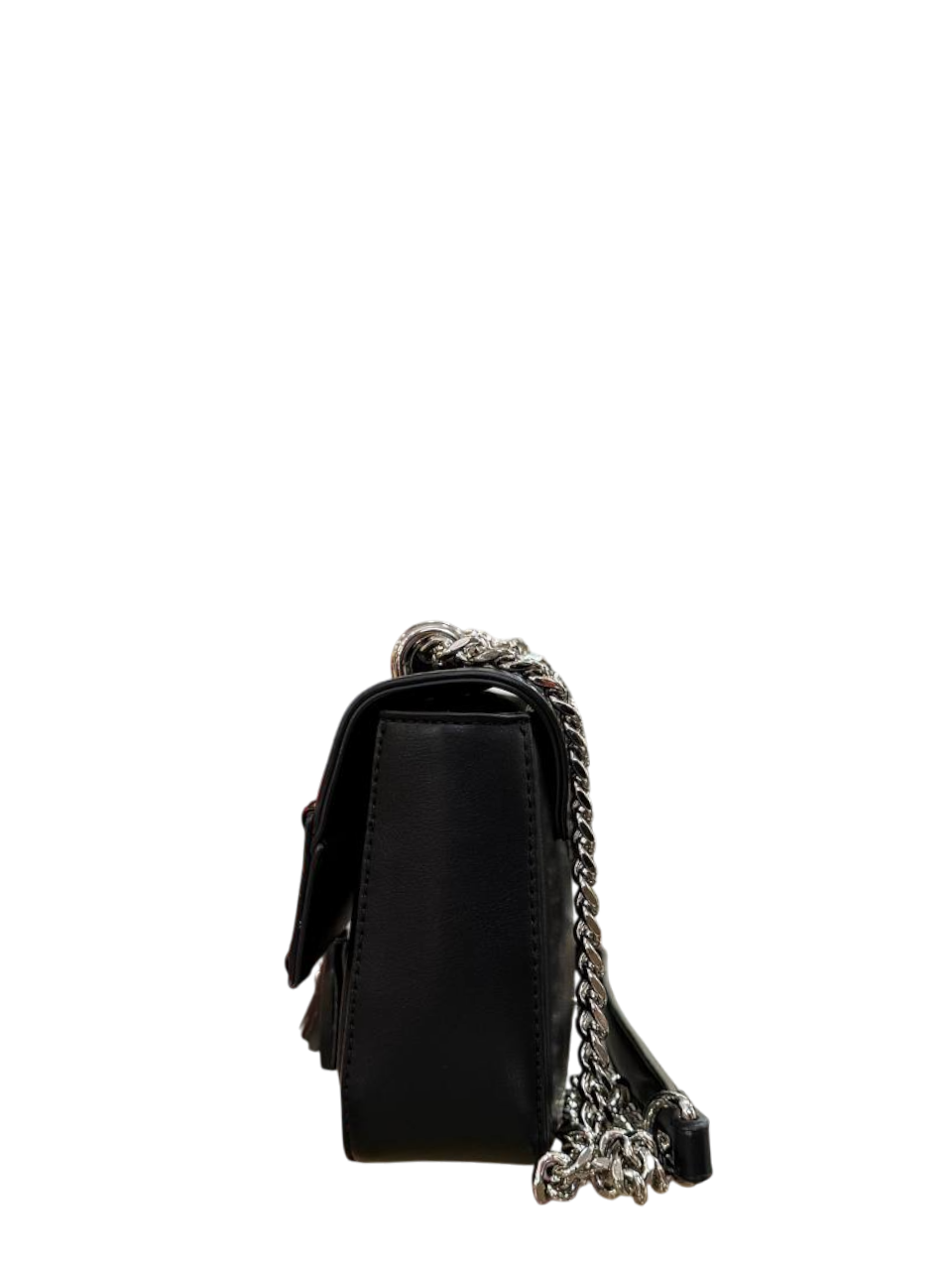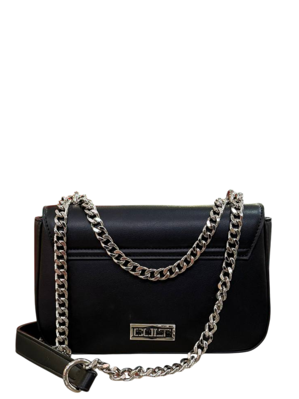 Borsa firmata CULT in ecopelle con chiusura magnetica, scomparto interno, taschino e tracolla a catena con manico in ecopelle.