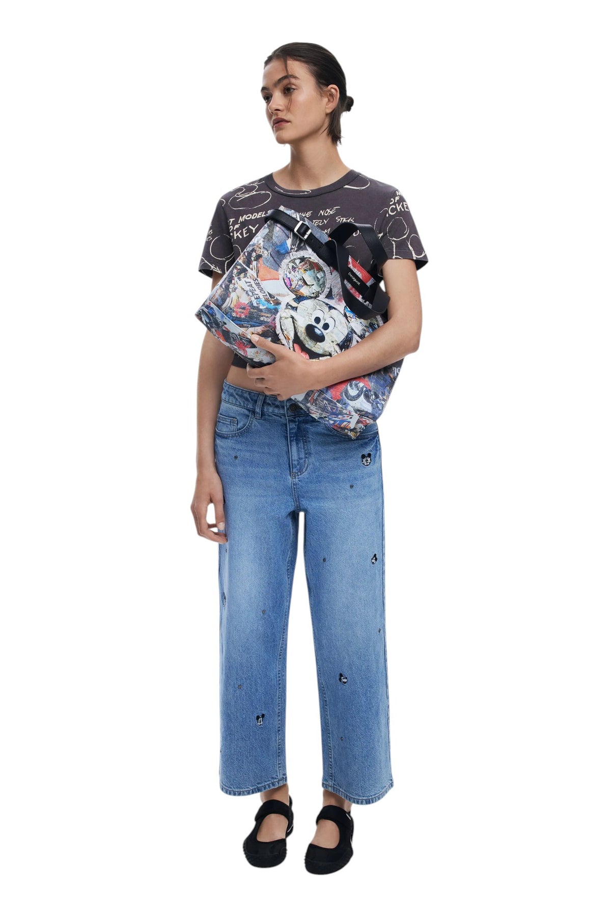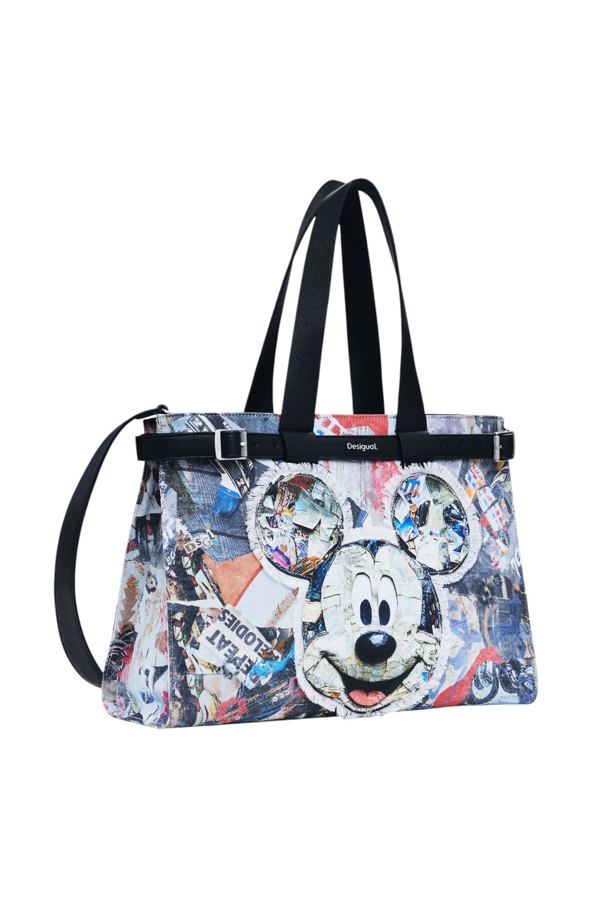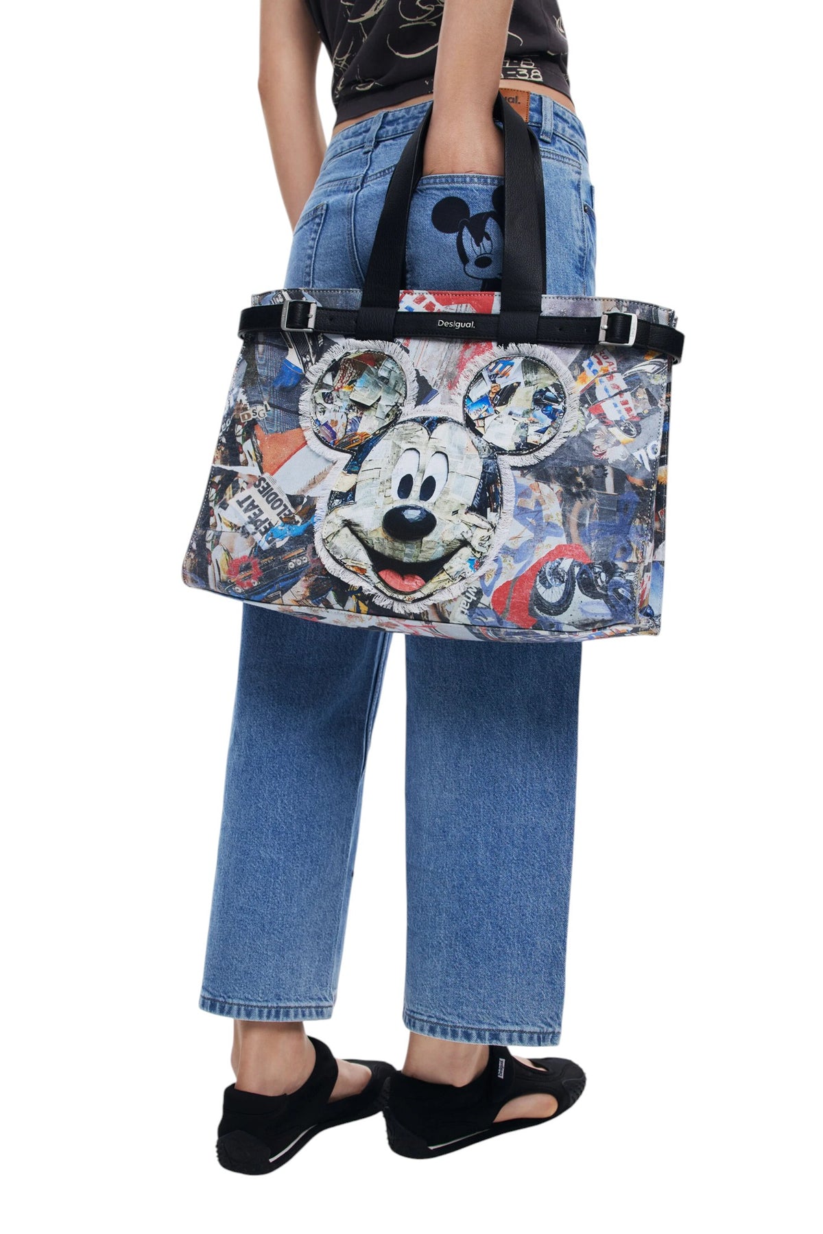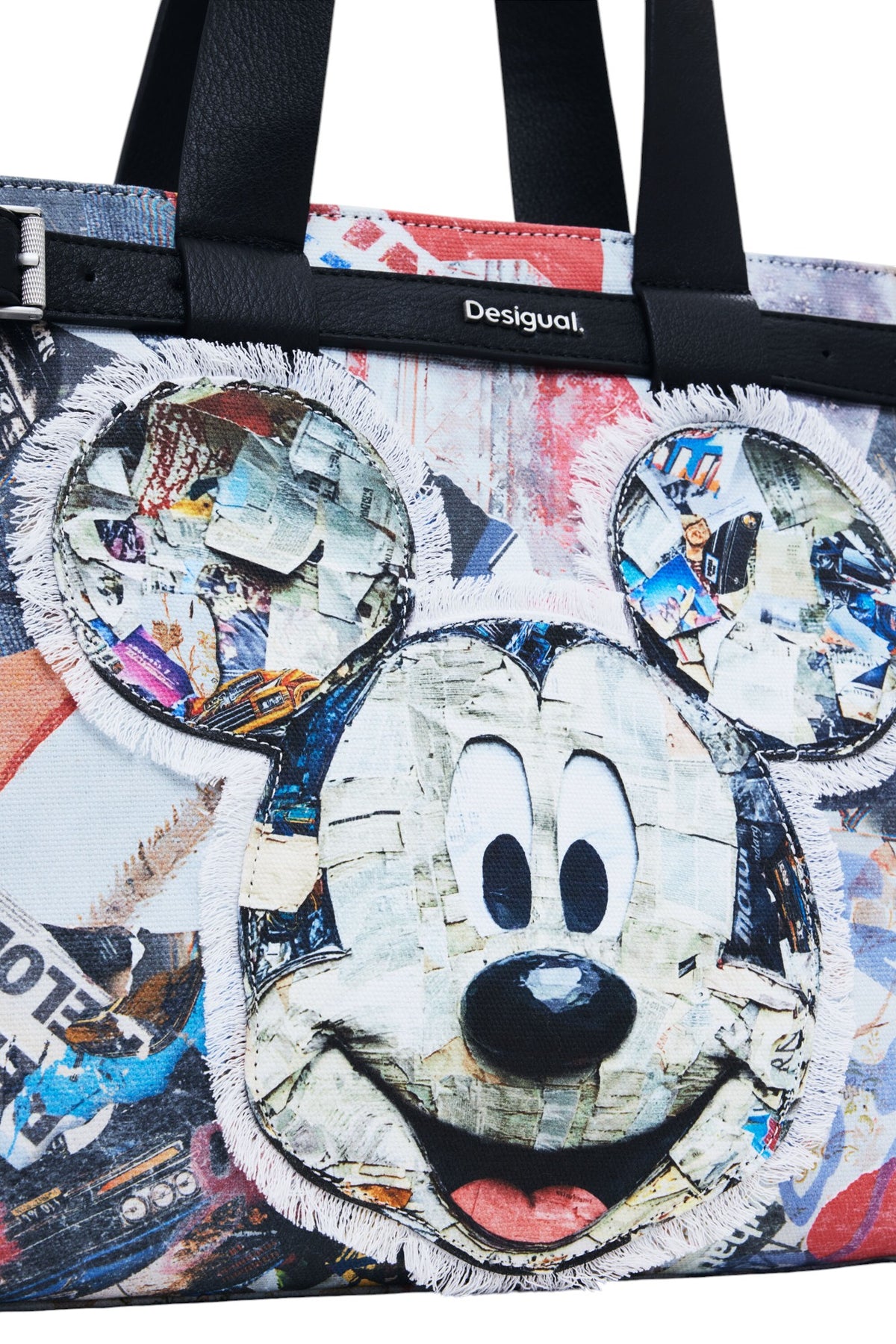 Borsa a tracolla stile valigetta, in tessuto, con manico corto fisso e tracolla lunga rimovibile, chiusura con cerniera e stampa stile graffiti con volto di Mickey Mouse™.
