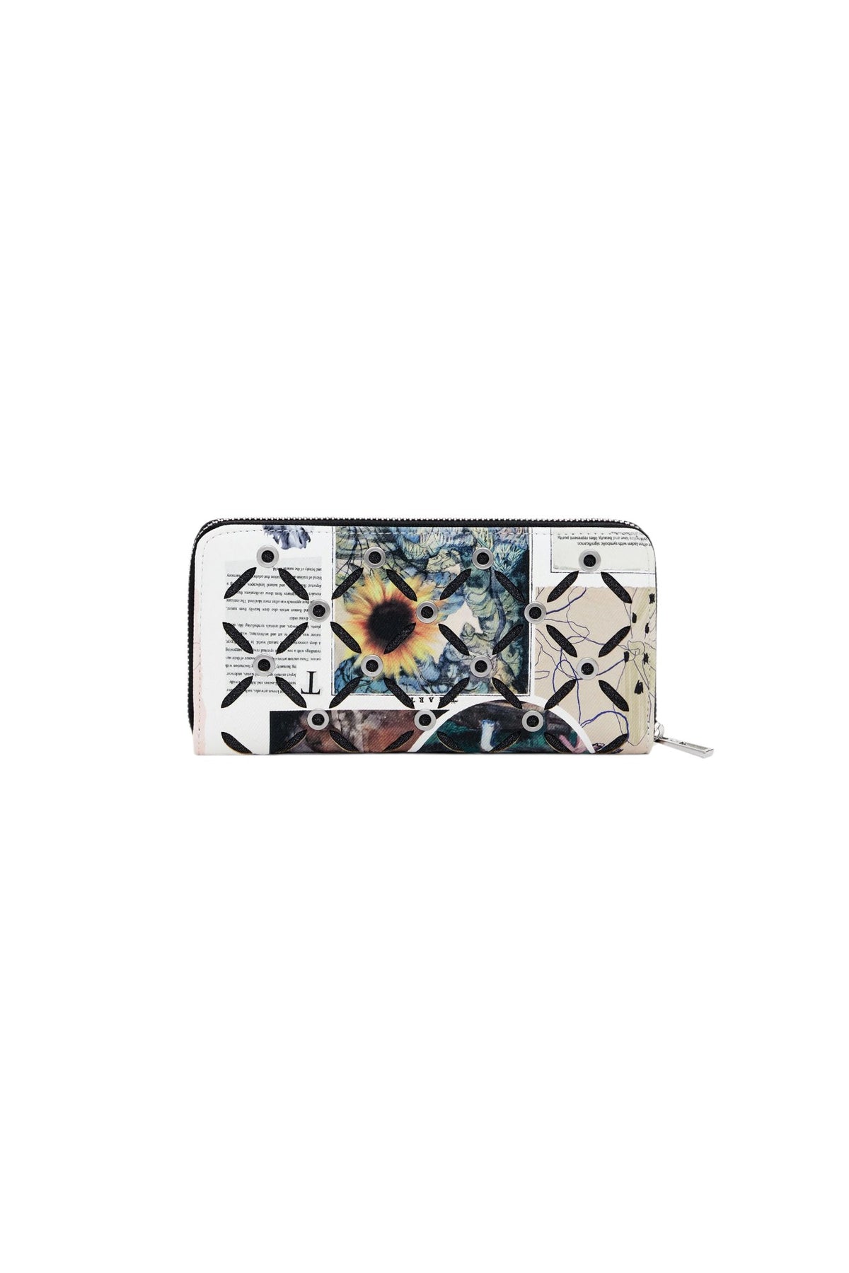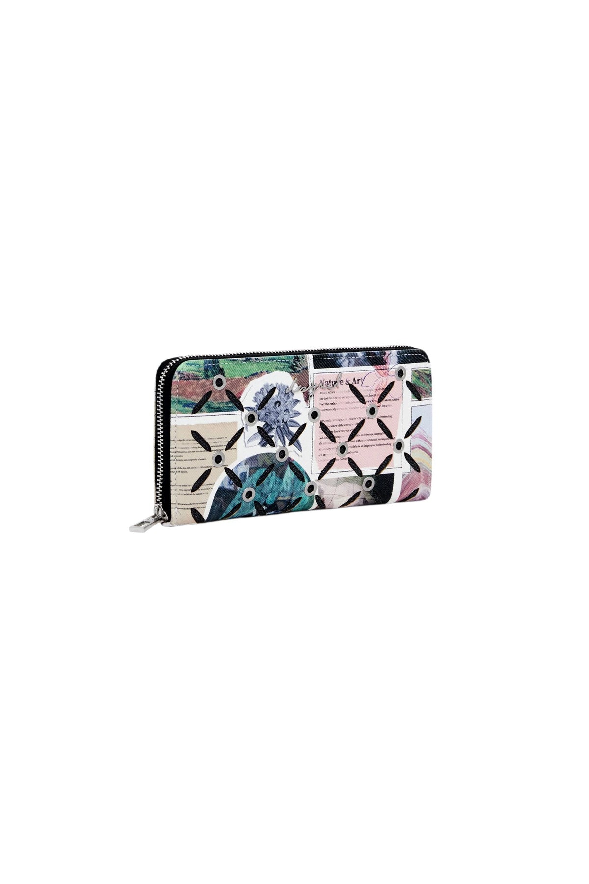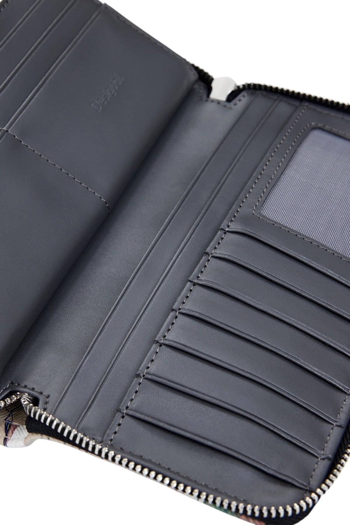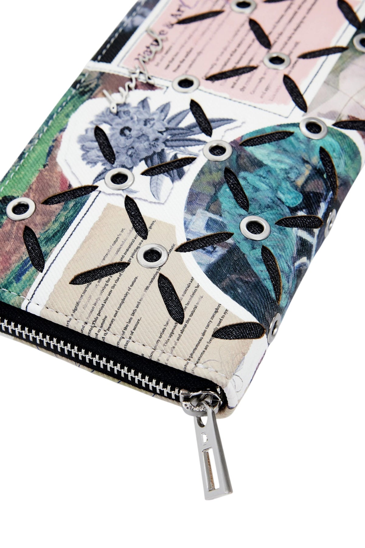 Portafoglio grande traforato con stampa paesaggio, cerniere e diversi scomparti per carte.