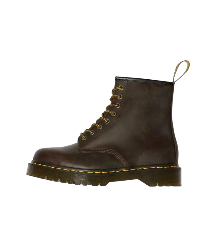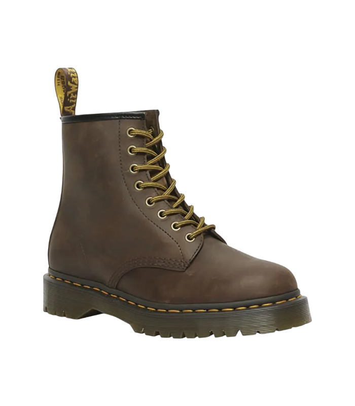 L'anfibio unisex 1460 si rinnova con la pelle Crazy Horse, dal look vissuto e robusto. Mantiene tutti i tratti iconici delle Docs — cuciture gialle, bordi scanalati e fettuccia posteriore — ed è costruito con guardolo Goodyear e suola AirWair™ resistente, antiscivolo e antiabrasione.