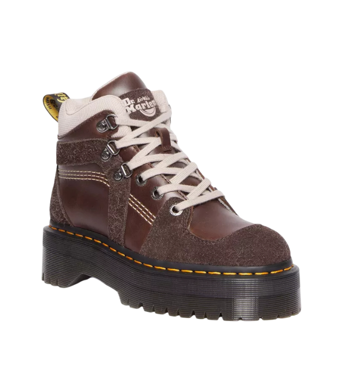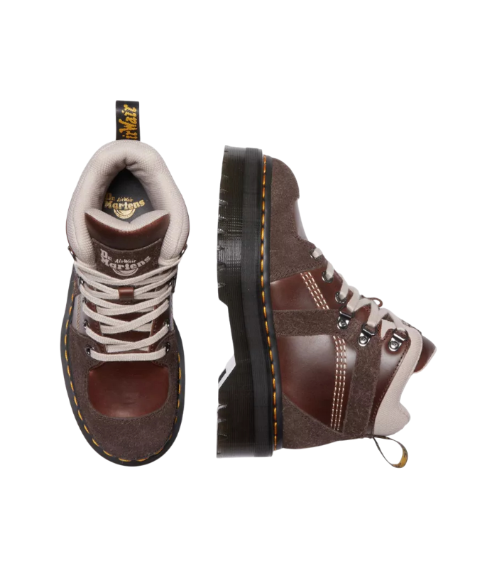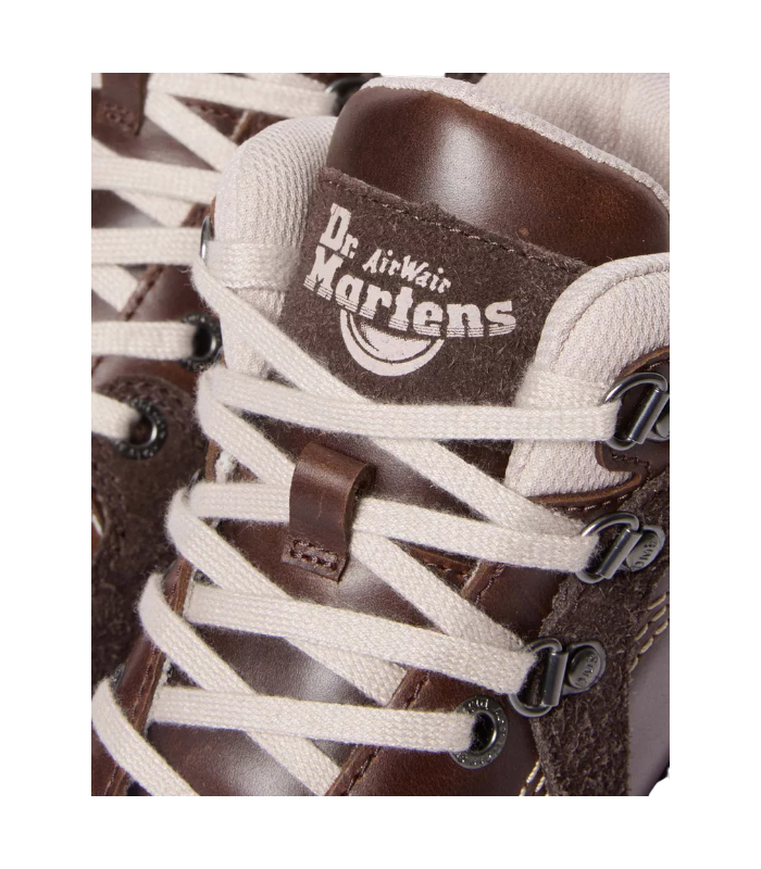 Ispirato agli archivi DM's e reinterpretato per le nuove generazioni, lo Zuma combina stile grintoso e materiali innovativi. Realizzato in Classic Pull Up (pelle satinata) e Wooly Bully (camoscio pesante dall’aspetto vissuto), è rifinito con una cavigliera in mesh traspirante e accessori metallici color canna di fucile.
