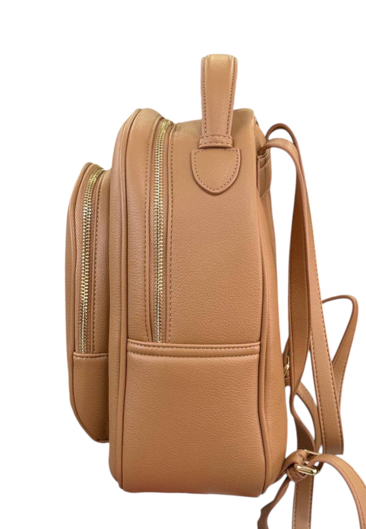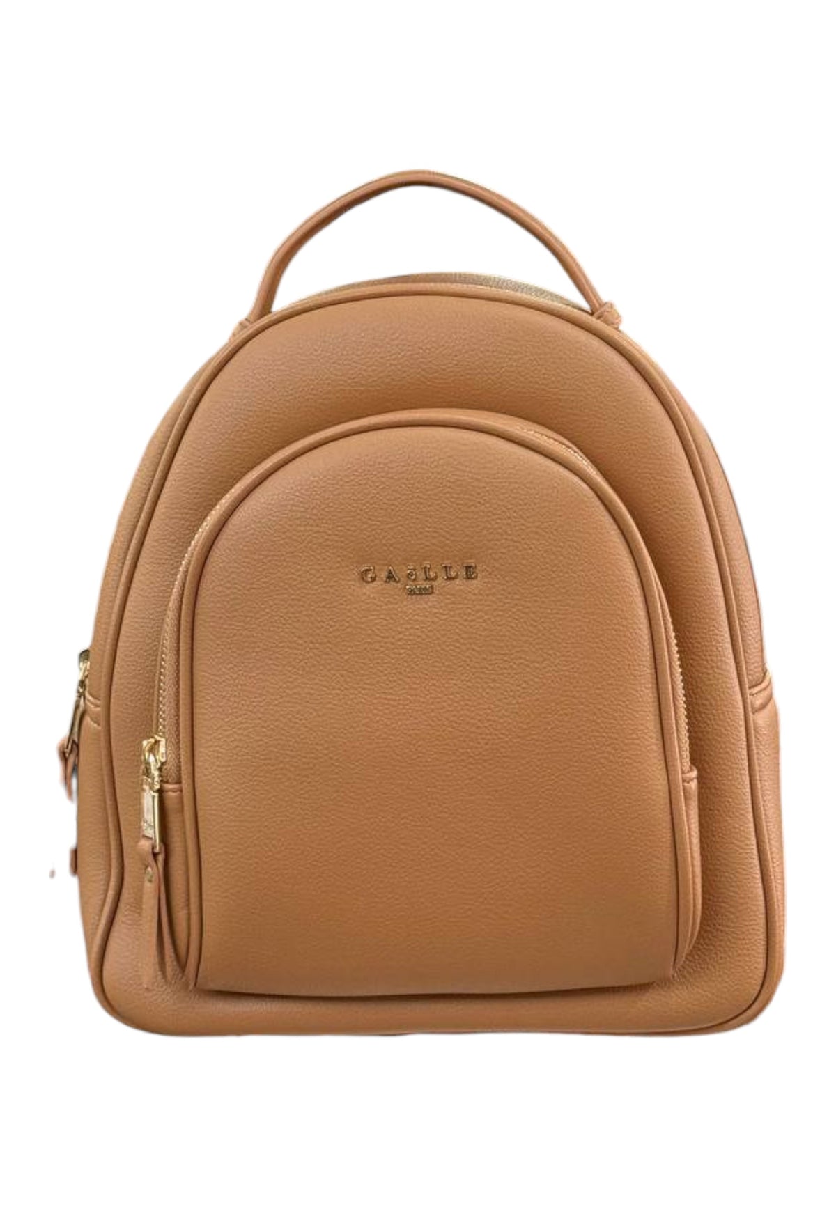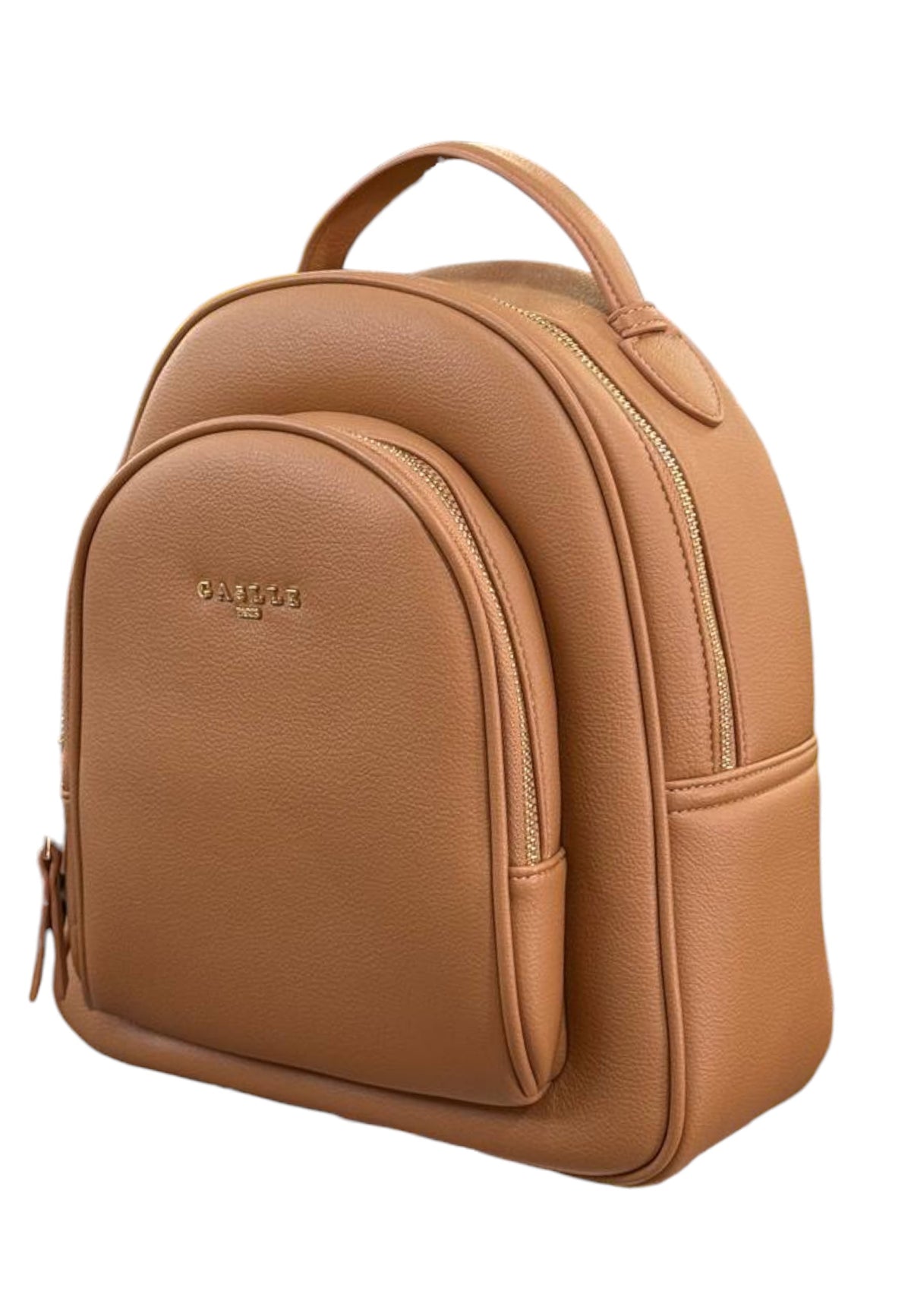 Zaino firmato Gaëlle Paris in ecopelle con chiusura a zip, due scomparti interni, due taschini interni di cui uno con chiusura a zip e logo metallico posizionato frontalmente.