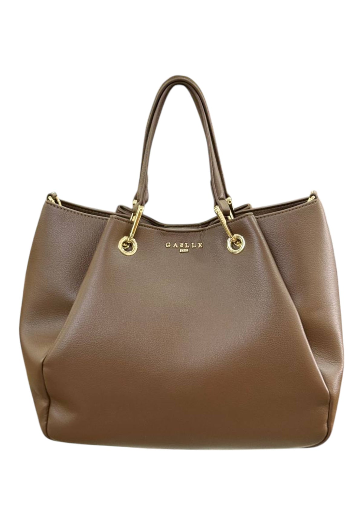 Borsa firmata Gaëlle Paris in ecopelle con chiusura magnetica, tracolla rimuovibile, scomparto interno, due tasche interne tra cui una con chiusura a zip e logo metallico.